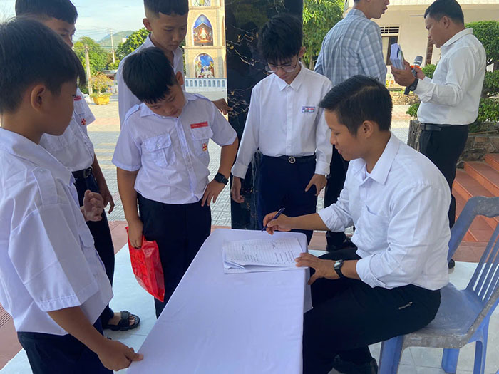Sáng sớm các em dự tu của các giáo xứ đến ghi danh.