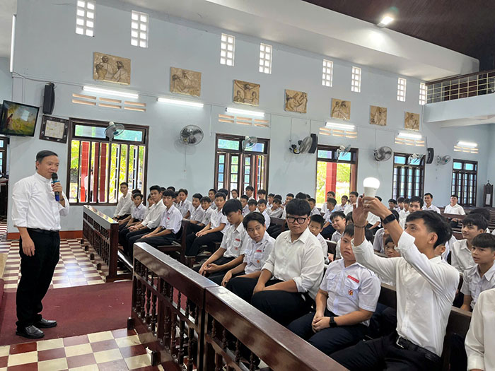 Ngày 16.07.2025, tại nhà thờ Giáo xứ Loan Lý, ngày gặp mặt các em Ơn gọi cấp phổ thông Hạt Hải Vân đã diễn ra trong bầu khí tràn đầy niềm vui và hy vọng. Năm nay, có tất cả 93 em ơn gọi đến từ các Giáo xứ Loan Lý, Nước Ngọt, Phước Tượng, Thủy Cam, Thủy Yên, Thừa Lưu, Sáo Cát, Hói Dừa và Đá Bạc. Đặc biệt có sự hiện diện và đồng hành của Cha Giorgio Nguyễn Thành Phương – Hạt Trưởng, Cha Giacôbê Nguyễn Xuân Lành – Trưởng Ban Đào Tạo, Cha Gioan Bosco Trần Anh Thao – Đặc trách ơn gọi Hạt, quý Cha Quản xứ, và các Thầy Đại Chủng Sinh trong Hạt.