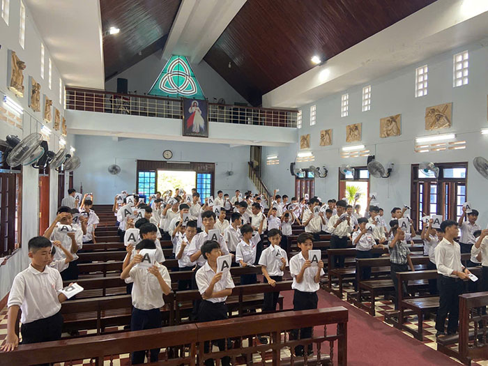 Sau giờ chia sẻ là phần thi “Rung Chuông Vàng – Giáo lý Năm Thánh”, mang đậm tinh thần trẻ trung, thiêng liêng và bổ ích. Với các câu hỏi xoay quanh nội dung giáo lý và chủ đề Năm Thánh, các em vừa được ôn lại kiến thức vừa học hỏi thêm nhiều điều mới mẻ trong tiếng cười sôi động và tinh thần thi đua lành mạnh.