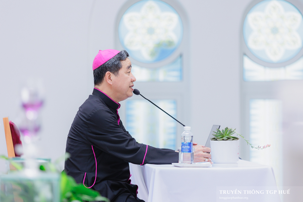 Với giờ chia sẻ buổi sáng, Đức Cha giảng phòng chia sẻ đề tài “Linh mục hiệp hành truyền giáo”. Qua đó, ngài nhấn mạnh đến tính hiệp hành trong đời sống mục vụ của Linh mục, loại bỏ chủ nghĩa giáo sĩ trị; nhờ đó, mọi thành phần dân Chúa đều có tiếng nói và tất cả phải lắng nghe tiếng Chúa Thánh Thần. Linh mục cũng được kêu gọi để sống gần gũi với những người nghèo khổ, các trẻ em, những người bất hạnh, những người thấp cổ bé miệng giữa xã hội.