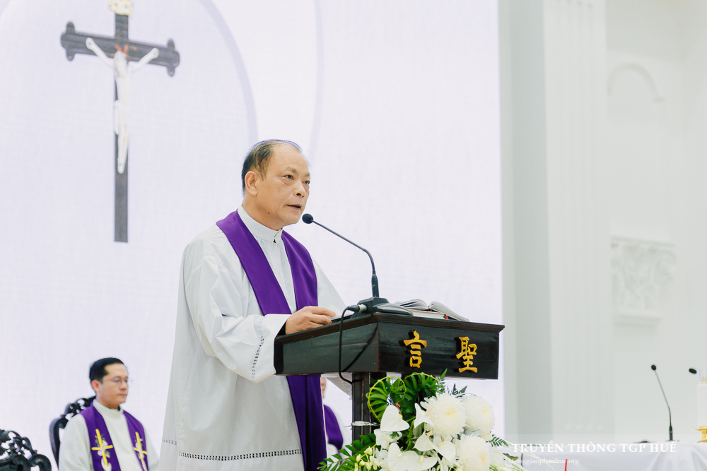 Trong phần chia sẻ Lời Chúa, Cha Antôn Nguyễn Văn Thăng – Giám đốc Nhà hưu dưỡng Huế lược lại cuộc đời 82 năm làm người và 53 năm trong thiên chức Linh mục của cố Linh mục Anrê. Ngài đã đảm nhận việc coi sóc nhiều Giáo xứ, quản lý Tiểu Chủng viện Hoan Thiện, đặc trách Đại Chủng sinh và Chủng sinh nội – ngoại trú của TGP. Sứ vụ mục tử của cố Linh mục Anrê gắn liền với giai đoạn khó khăn của xã hội và Giáo hội, thiếu thốn mọi bề, nhưng ngài luôn toàn tâm toàn ý lo cho đoàn chiên. Cha Antôn nhấn nhấn mạnh rằng cuộc đời của cố Linh mục Anrê đã theo sát dấu chân của Đức Kitô mục tử, sống đời nghèo khó, khiêm tốn, tận tuỵ và hết lòng hết sức cho công cuộc đào tạo Chủng sinh của TGP. Qua sự hướng dẫn đồng hành của ngài, nhiều Chủng sinh nay đã trở thành Linh mục phục vụ Giáo hội.