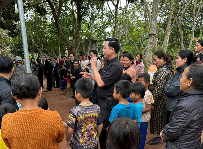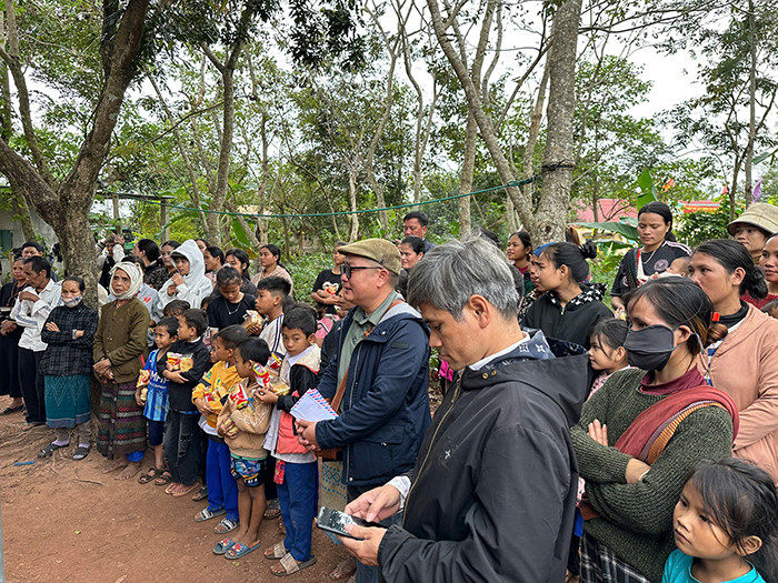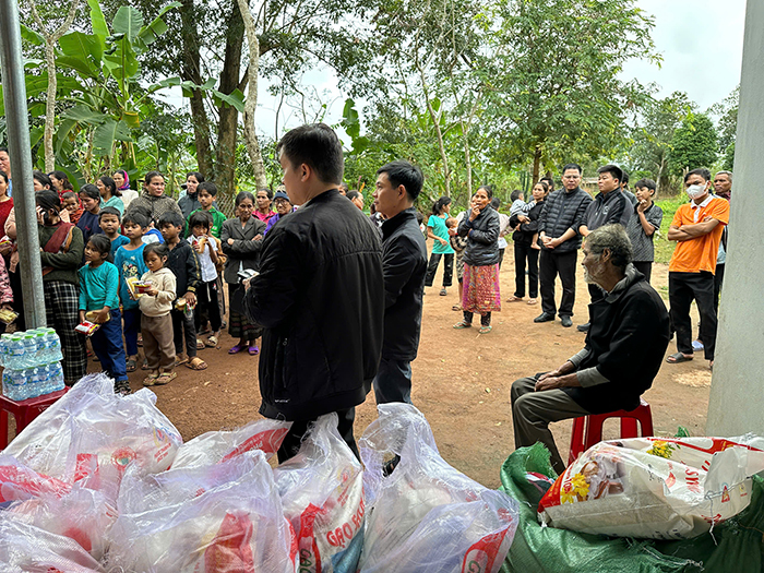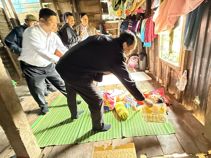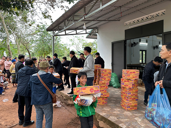 Đặc biệt, phái đoàn đã đến tận nơi thăm hỏi và trao phần quà cho một em nhỏ tàn tật trong bản. Khoảnh khắc vị linh mục ân cần cúi xuống nắm lấy bàn tay em trở nên minh chứng sống động cho lời dạy của Chúa Giêsu: “Ai đón nhận một trong những kẻ bé mọn này là đón nhận chính Thầy” (Mt 18,5). Hình ảnh ấy để lại nhiều xúc động nơi những người hiện diện, như ánh sáng hy vọng giữa mùa mưa rừng se lạnh của miền biên giới.