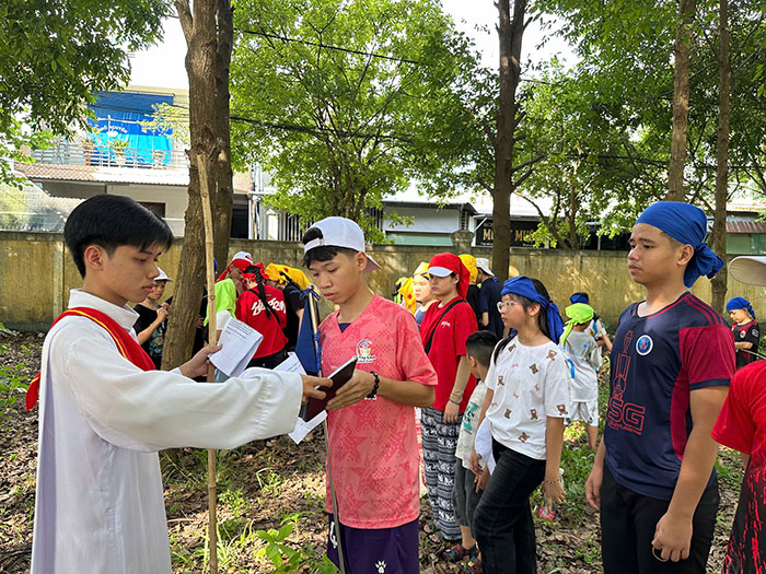 Đúng 15g30, các em chính thức bước vào Hành trình sa mạc với chủ đề “ Giải phóng dân Chúa “, hành trình tuy gian khổ với những thử thách của các trạm đặt ra nhưng lại làm nổi bật tinh thần đồng đội giữa các em. Dù chạy trạm nhanh hay chậm vẫn luôn chờ đợi nhau, đồng hành cùng nhau. Hành trình sa mạc kết thúc, các đội cùng nhau mỗi người một tay dọn dẹp đúng như phương châm của thiếu nhi “lúc về sạch hơn lúc đến”.