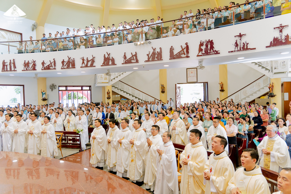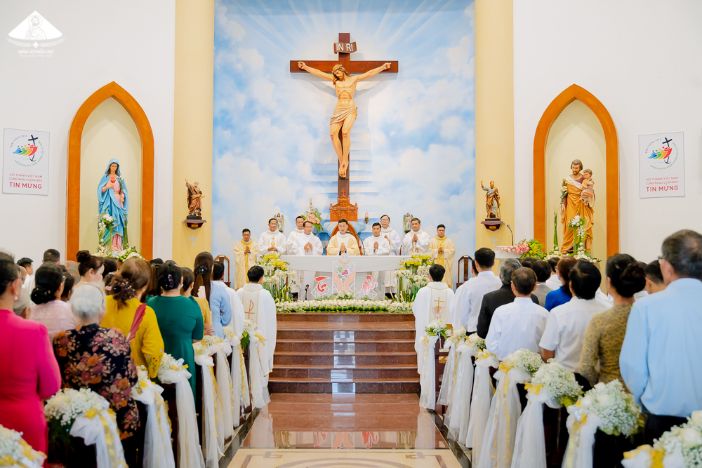 Chiều ngày 05.08.2025, toàn thể giáo dân Giáo xứ Đốc Sơ hân hoan đón chào Tân Linh mục Phêrô Nguyễn Sơn Tùng đến hiệp dâng Thánh lễ Tạ ơn dịp mừng Hồng ân Linh mục vừa được nhận lãnh vào ngày 04.08.2025 tại Nhà thờ Chính tòa Phủ Cam.