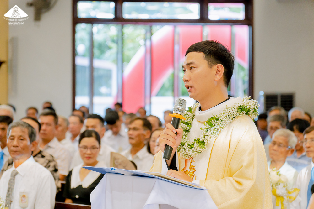 Với tình cha – con, tình anh em Linh mục, trong bài giảng lễ, Cha Giuse Vũ Quốc Bình đã đề cao sự thiêng liêng, cao trọng của chức thánh Linh mục. Tuy nhiên, Linh mục cũng chỉ là một con người bé mọn, tầm thường như bao người khác nhưng được Chúa tuyển chọn, tin tưởng và trao ban sứ mạng phục vụ đoàn chiên của Chúa. Đồng thời, Cha Giuse cũng nhấn mạnh rằng “Vinh dự càng cao thì trách nhiệm càng lớn”, Linh mục cần phải là một tôi tớ trung thành, chu toàn sứ mạng mà Chúa đã trao phó. Bên cạnh đó, Linh mục phải có trách nhiệm phục vụ cộng đoàn của mình một cách vô vị lợi. Kết thúc bài giảng, Cha cũng gửi lời chúc mừng đến Tân Linh mục và mời gọi mọi người cầu nguyện nhiều hơn cho các Linh mục.