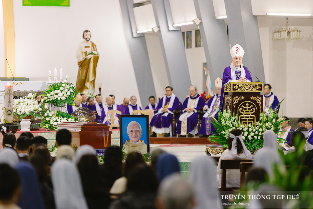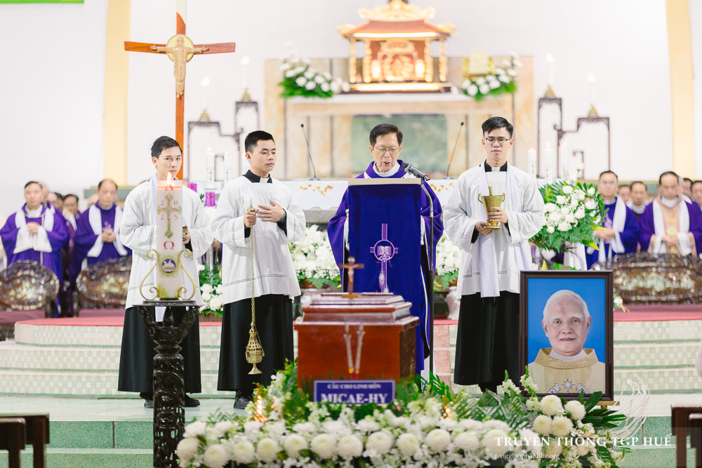 “Hôm nay tại Nhà thờ Chính tòa, cũng là quê hương của Cha Micae-Hy Lê Ngọc Bửu, chúng ta dâng Thánh lễ cuối cùng của cuộc đời ngài trên trần gian. Một Thánh lễ của Đức tin, tình mến, của hiệp nhất yêu thương. Và cũng là Thánh lễ tạm biệt cộng đoàn của Cha Micae-Hy Lê Ngọc Bửu.” – Đó là một trong những tâm tình mà Đức Cha Giuse Đặng Đức Ngân – Tổng Giám mục (TGM) Tổng Giáo phận (TGP) Huế thân thưa với cộng đoàn khi khởi sự Thánh lễ An táng cho Cố Linh mục Micae-Hy Lê Ngọc Bửu.