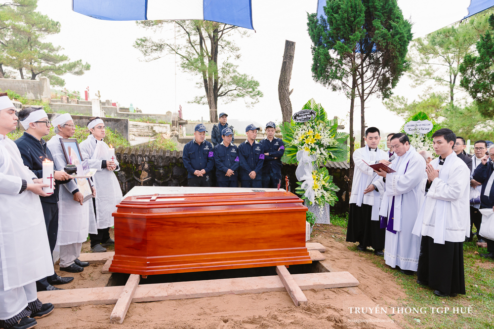 Kết thúc nghi thức, thân xác Cố Linh mục Micae-Hy được an táng trong lòng đất, nơi nghĩa trang Giáo sĩ của TGP.