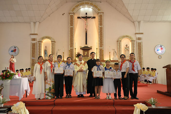 Kết thúc Thánh lễ là Bế giảng Giáo lý năm học 2024 – 2025. Cha Quản xứ, Hội đồng Giáo xứ và Ban Giáo lý đã trao thưởng cho các em chăm ngoan, học giỏi, siêng năng tham dự Thánh Lễ và sống chứng nhân trong năm học vừa qua.