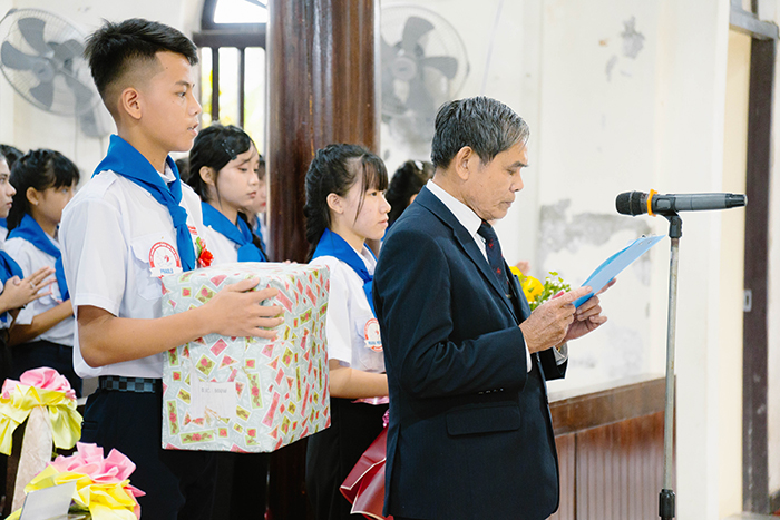 Để tỏ lòng tri ân quý Đức TGM, quý Cha, quý Tu sĩ cùng quý ân nhân, vị đại diện Giáo xứ dâng lời tri ân cùng dâng tặng Đức Tổng cùng quý Cha bó hoa và chút quà quê hương biểu lộ cho tấm lòng của cộng đoàn Giáo xứ.