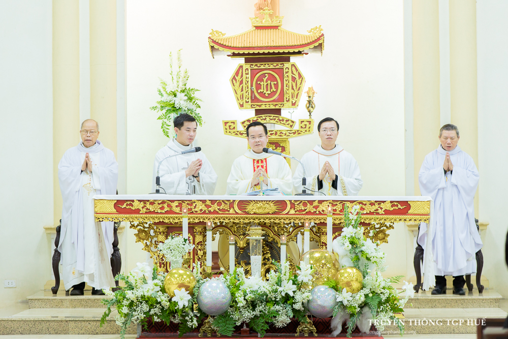 Mở đầu Thánh lễ, ngoài những tâm tình trên, Cha TĐD Barnaba bày tỏ ước mong mỗi người trong cộng đoàn biết noi theo gương sáng của các Thánh để mai sau mỗi người cũng được chung hưởng hạnh phúc Nước Trời. Đồng thời, Cha Tổng Đại diện mời gọi cộng đoàn hiệp ý cầu nguyện cho những anh chị đã và đang gánh chịu hậu quả nặng nề của trận lũ lịch sử những ngày cuối tháng 10 tại Huế, Quảng Trị và Đà Nẵng.
