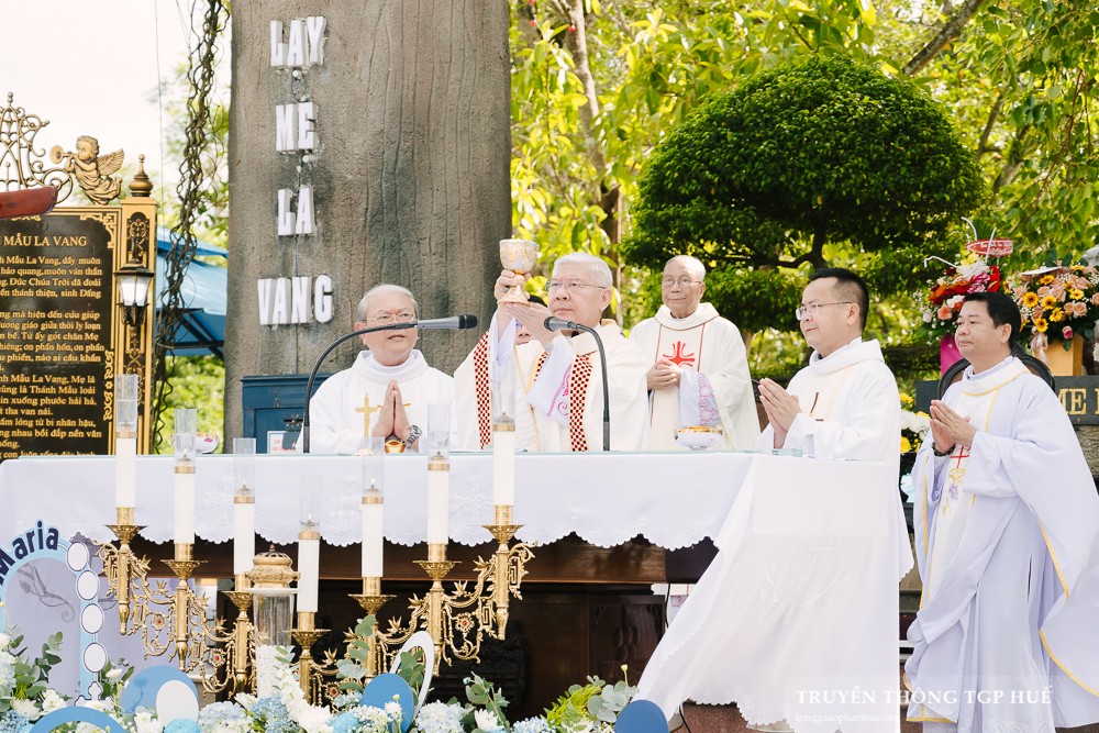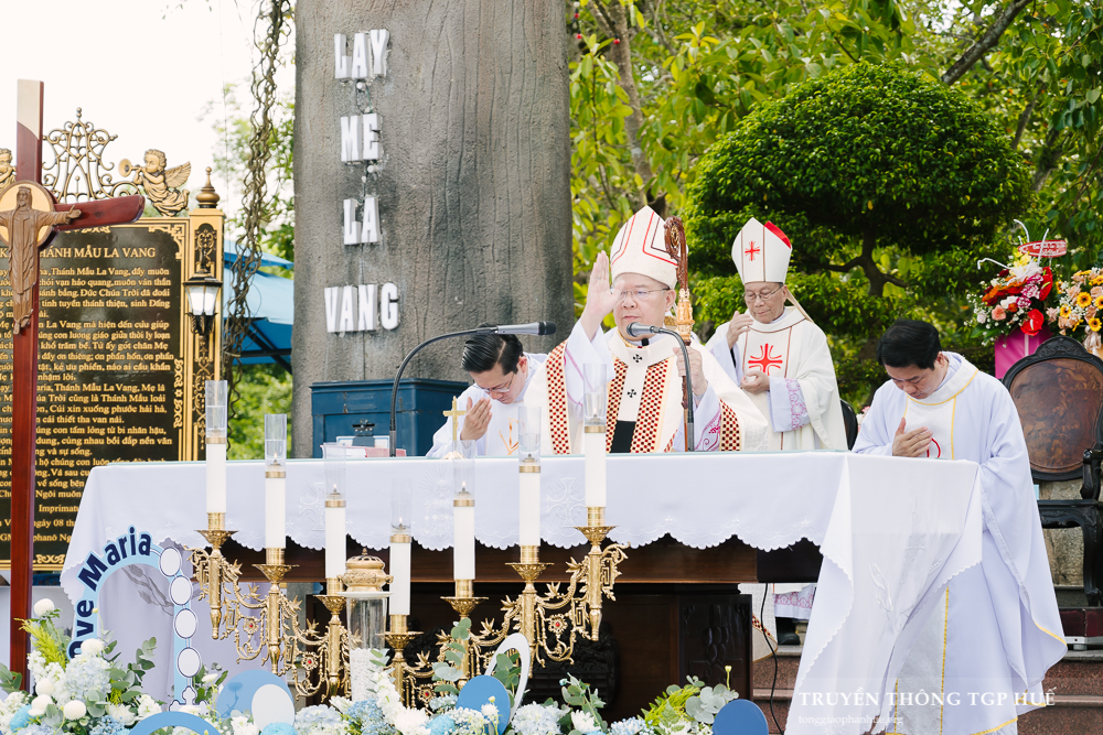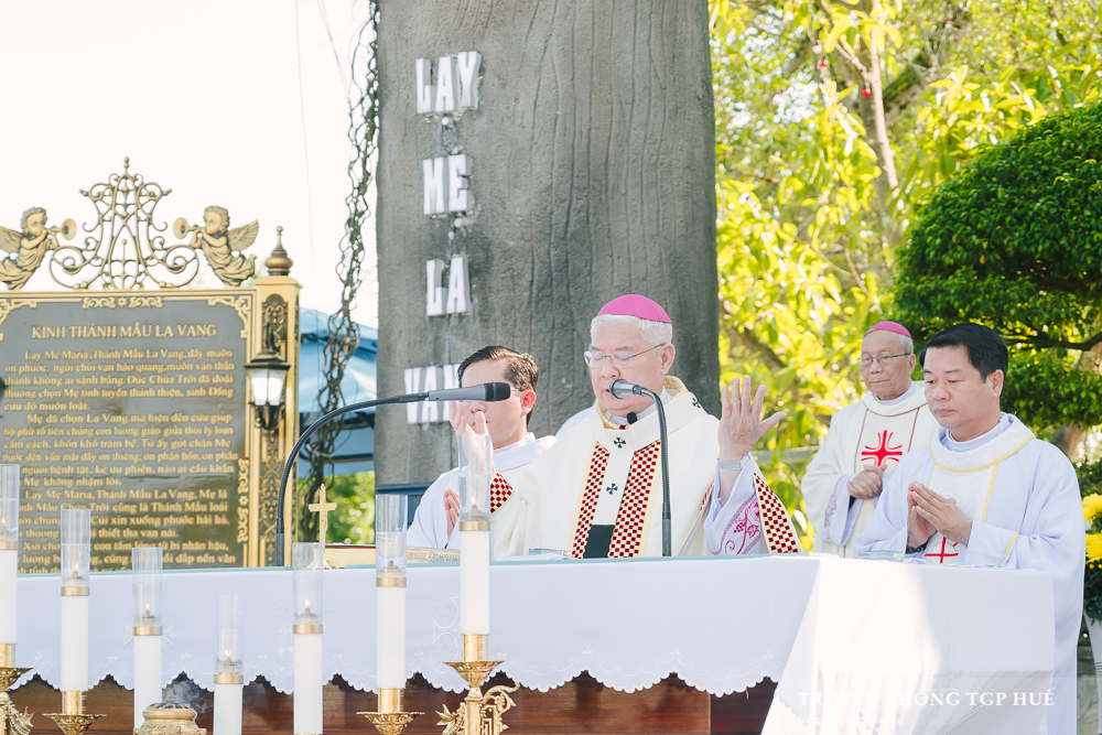 Đồng tế với Đức TGM Giuse trong Thánh lễ này có Đức Cha Phanxicô Xaviê Lê Văn Hồng – Nguyên TGM TGP Huế, Cha Barnaba Trần Đình Phục – Tổng Đại diện, Cha Đaminh Phan Hưng – Đại diện Giám mục Đặc trách các Hội đoàn, quý Đức Ông, quý Cha trong và ngoài TGP. Hiện diện và sốt sắng tham dự Thánh lễ có quý Tu sĩ nam nữ, Chủng sinh cùng đông đảo anh chị em giáo dân TGP Huế cũng như khách hành hương thập phương trở về La Vang trong những ngày đầu tháng Mân Côi.