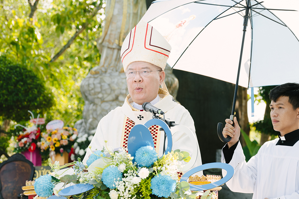 Trong bài giảng lễ, Đức TGM Giuse đặc biệt nhấn mạnh đến Kinh Mân Côi là một khí giới thiêng liêng. Lời mời gọi lần chuỗi Mân Côi được Mẹ nhắc nhở mỗi lần hiện ra vẫn còn vang vọng đến hôm nay; và càng cấp thiết hơn trong thời đại đầy biến động, bất ổn, chiến tranh, bạo lực, khủng hoảng luân lý, lương tâm và tình người. Lời kinh Mân Côi không chỉ là lời kinh Mẹ yêu thích, nhưng còn là con đường đưa dẫn mỗi người đi sâu vào mầu nhiệm cứu độ của Chúa Giêsu và cuộc đời Đức Mẹ.