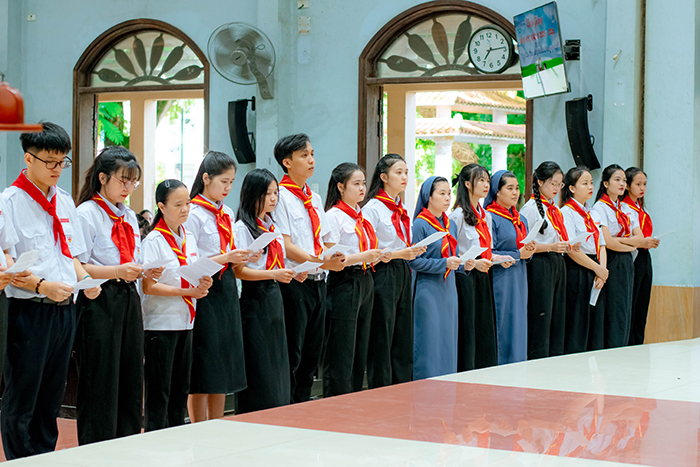 Sau lời nguyện Hiệp lễ, nghi thức Tuyên hứa các Giáo lý viên đã được cử hành long trọng. Quý Thầy, quý Nữ tu và quý anh chị Giáo lý viên được mời gọi tiếp tục dấn thân phục vụ với tinh thần yêu thương, hy sinh và trách nhiệm trong sứ vụ hướng dẫn đức tin cho các em thiếu nhi.