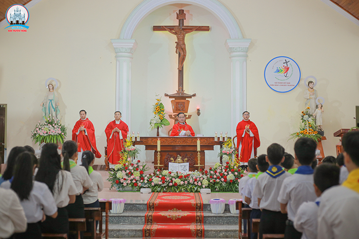 Và trong bài giảng lễ, qua hình ảnh cây Thánh Giá – biểu tượng tình yêu và sự hy sinh, Cha Phó xứ Matthêu nhắn nhủ các em khi bước vào mái trường của Thầy Giêsu thì cần biết chuyên chăm và biết hy sinh nhiều hơn qua việc từ bỏ những thú vui, những thói hư tật xấu, những ươn lười để bước vào năm học mới với tinh thần hăng say, nhiệt thành. Ngài cũng mời gọi cộng đoàn cầu nguyện cho các Giáo lý viên trong sứ vụ dạy dỗ được thấm nhuần tình yêu của Chúa Giêsu trên Thánh Giá, để không ngại khó nhọc, nhưng kiên nhẫn gieo trồng hạt giống Đức tin. Kiên nhẫn vác Thánh Giá qua việc chịu đựng sự nghịch ngợm, bướng bỉnh của trẻ nhỏ. Sống sao cho “lời dạy” luôn đi đôi với “lời chứng” trong đời sống hằng ngày. Giáo lý viên không chỉ truyền đạt kiến thức, mà còn truyền lửa Đức tin bằng tình yêu và đời sống cầu nguyện.