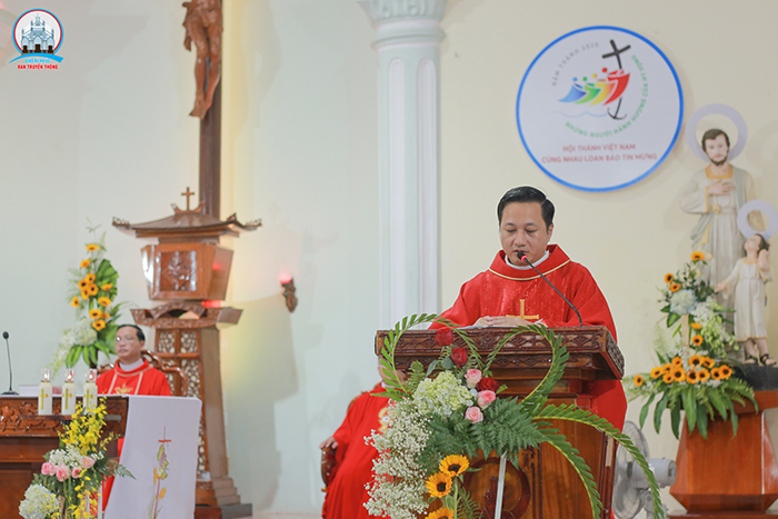 Sau lời nguyện hiệp lễ, Cha Quản xứ ban huấn từ và giới thiệu các nhân sự trong niên khóa 2025 – 2026. Sau đó, Cha Phó xứ xướng danh Ban Điều hành Giáo lý, quý Chị, quý Thầy Đại Chủng viện, quý Thầy Dòng Thánh Tâm, quý Giáo lý viên và Huynh trưởng sẽ đồng hành cùng các em thiếu nhi trong năm học mới này.