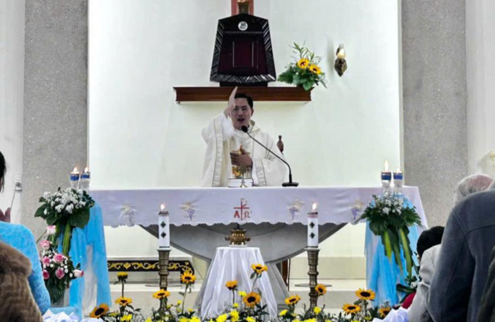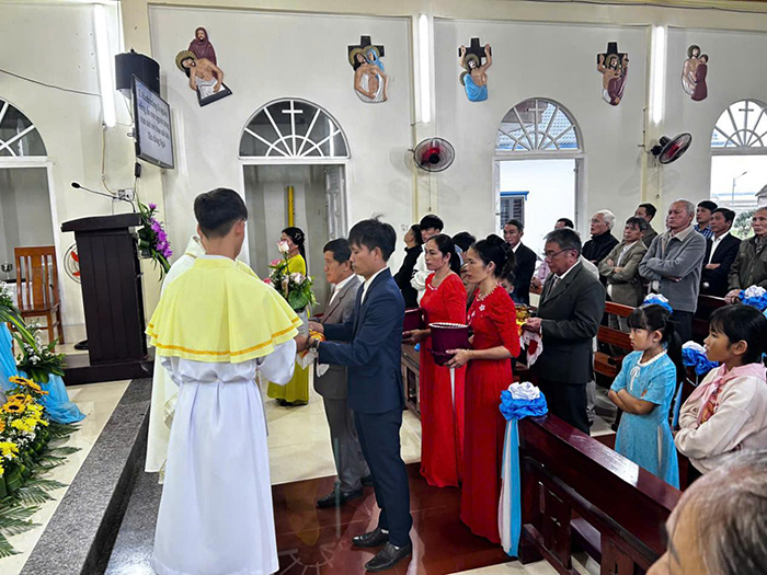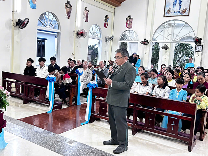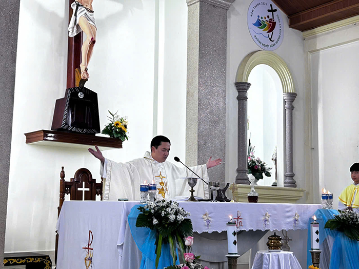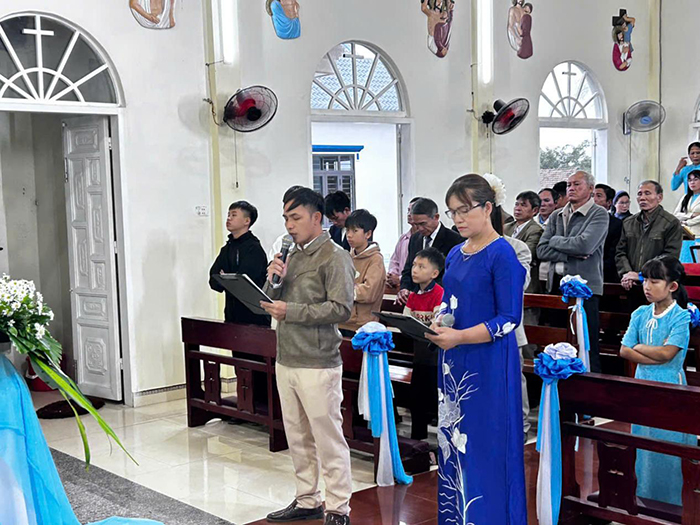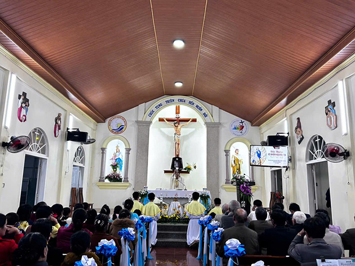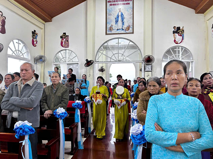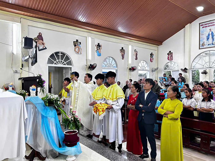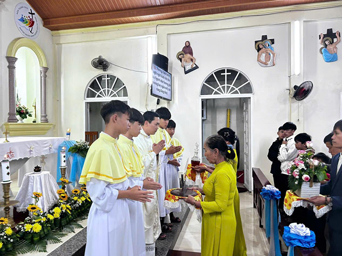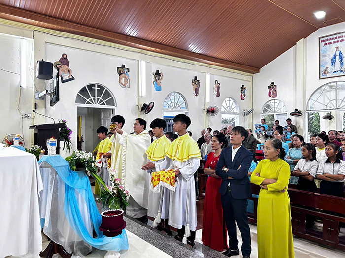 Thánh lễ do Cha Quản xứ Simon Trương Duy Lam chủ tế. Hiện diện trong Thánh Lễ này, còn có quý Nữ tu Hội dòng Mến Thánh Giá Huế đang mục vụ tại Giáo xứ, cùng với sự hiệp thông của đông đảo cộng đoàn dân Chúa từ nhiều giáo họ trong toàn Giáo xứ.