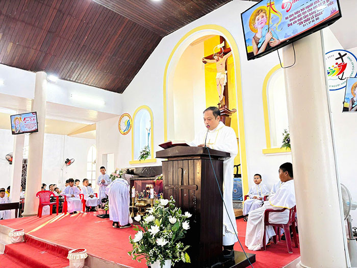 Trong bài giảng lễ, Cha Đaminh gửi lời mừng lễ bổn mạng đến Giáo họ Hòa An cùng Cha Quản xứ và Thầy Phó tế. Cha còn gửi gắm nhiều suy tư về đời sống đức tin của mọi người, làm sao để noi gương theo Thánh Gioan Tẩy Giả mà sống cuộc đời rao giảng Tin Mừng chính nơi mình đang sống.