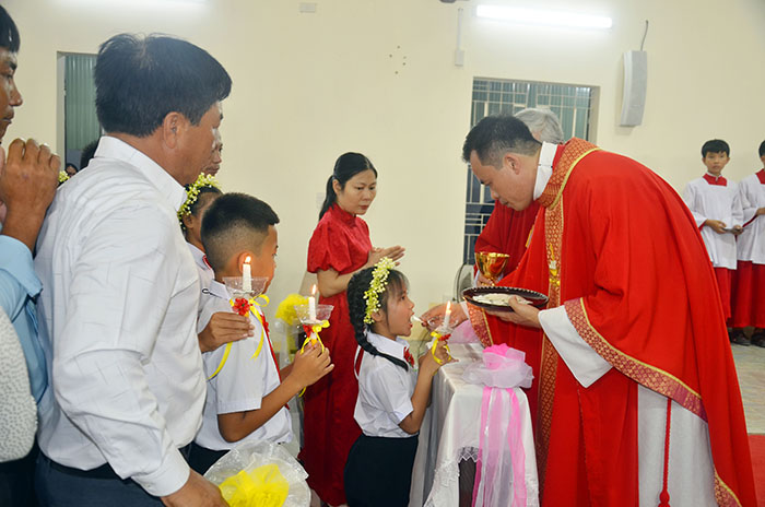 Đặc biệt, trong Thánh Lễ này, có 15 em thiếu nhi được Rước Chúa trọng thể lần đầu, và 13 em chuẩn bị lãnh nhận Bí tích Thêm sức.