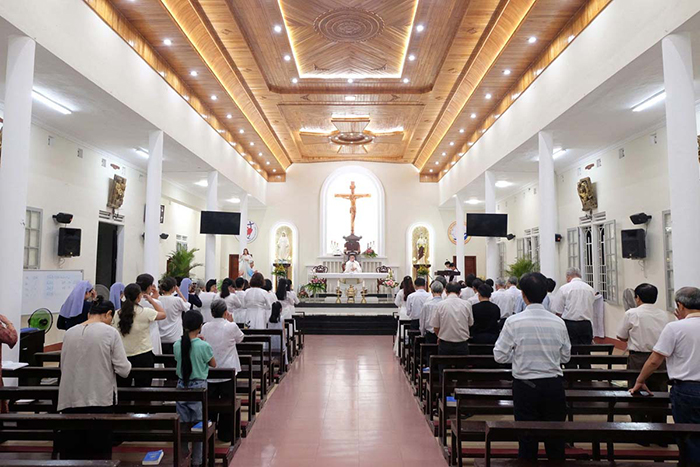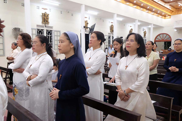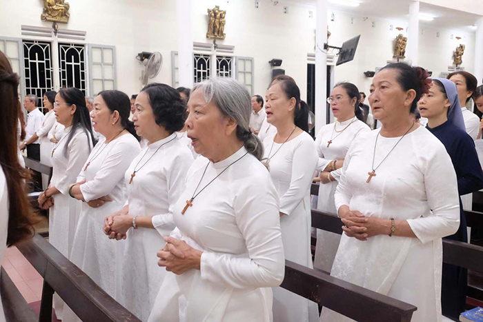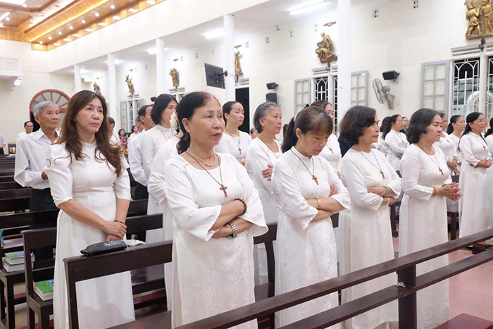 Lúc 19g00 ngày 10.07.2025, trong trang phục màu trắng tinh khôi với hình Thánh Giá mang trước ngực, các thành viên của Hiệp Hội Con Đức Mẹ Vô Nhiễm Giáo xứ Tây Lộc, cùng quý Sơ đồng hành tham gia đoàn rước do Cha Quản xứ Giuse Lê Văn Hồng chủ tế, tiến lên cung thánh trong niềm hân hoan tạ ơn nhân ngày Bổn mạng với tước hiệu Đức Mẹ Mân Côi.