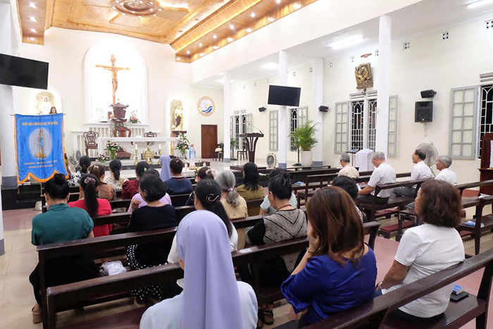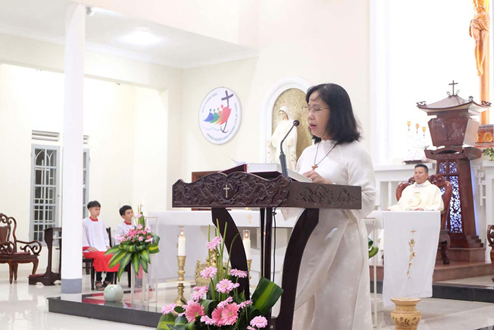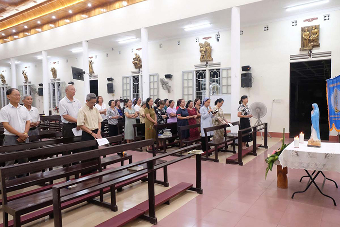 Qua bài chia sẻ Tin Mừng, Cha Quản xứ nhắc nhở cộng đoàn ý thức Kinh Mân Côi là lời cầu nguyện rất hữu hiệu và hãy để Mẹ Maria dẫn ta bước theo Chúa Giêsu, hãy học nơi Mẹ sự hiền lành, khiêm nhường và vâng phục thánh ý Thiên Chúa. Ngài không quên nhắc nhở mọi người phải biết siêng năng lần chuỗi Mân Côi theo lời Đức Mẹ dạy bảo, là việc rất cần thiết trong đời sống Đức tin của mỗi người. Ngài cũng nhắn nhủ các hội viên cố gắng sống theo linh đạo của hiệp hội là yêu mến Chúa Giêsu vác Thập giá và yêu mến Đức Maria Vô Nhiễm với hết tình con thảo.