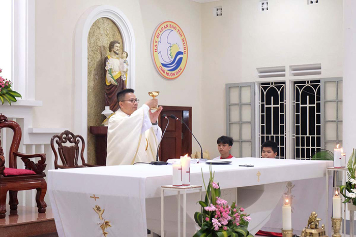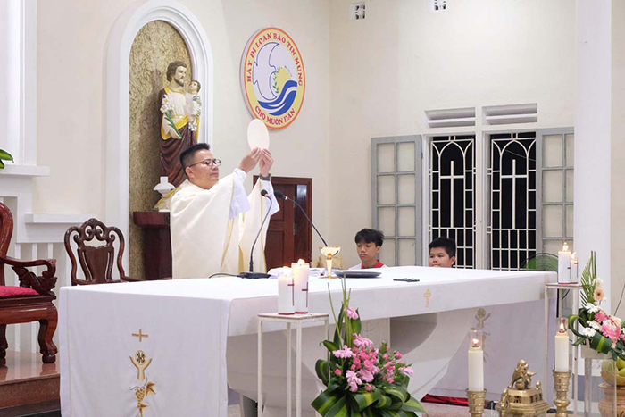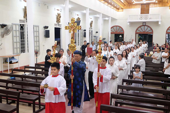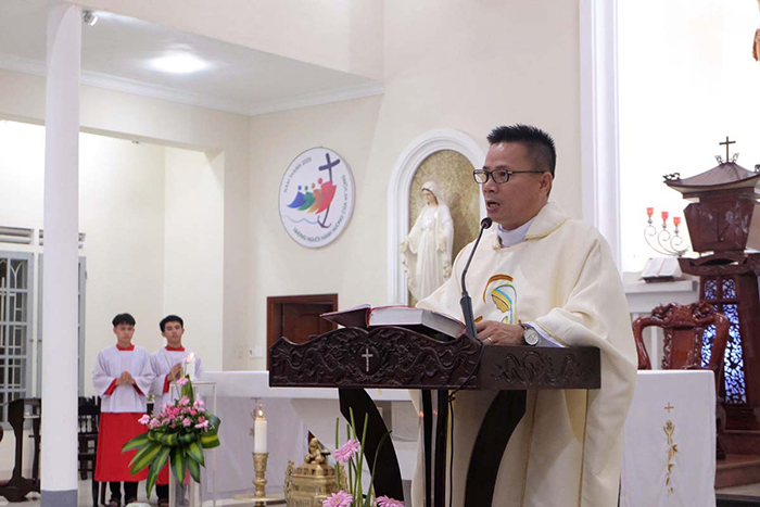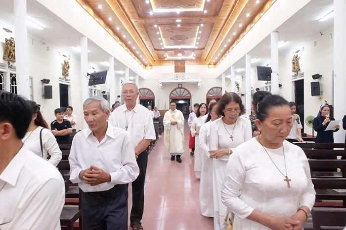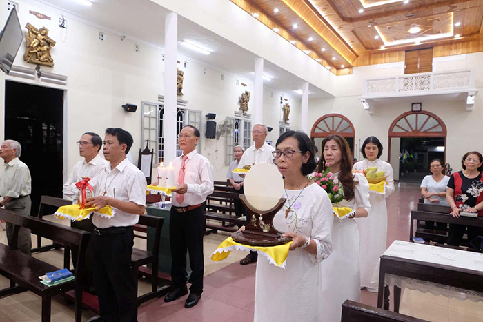 Mở đầu Thánh Lễ, Cha Quản xứ Giuse chào mừng các thành viên hiệp hội và mời gọi cộng đoàn hiệp thông cầu nguyện cho các thành viên của hiệp hội nhân ngày Bổn mạng.