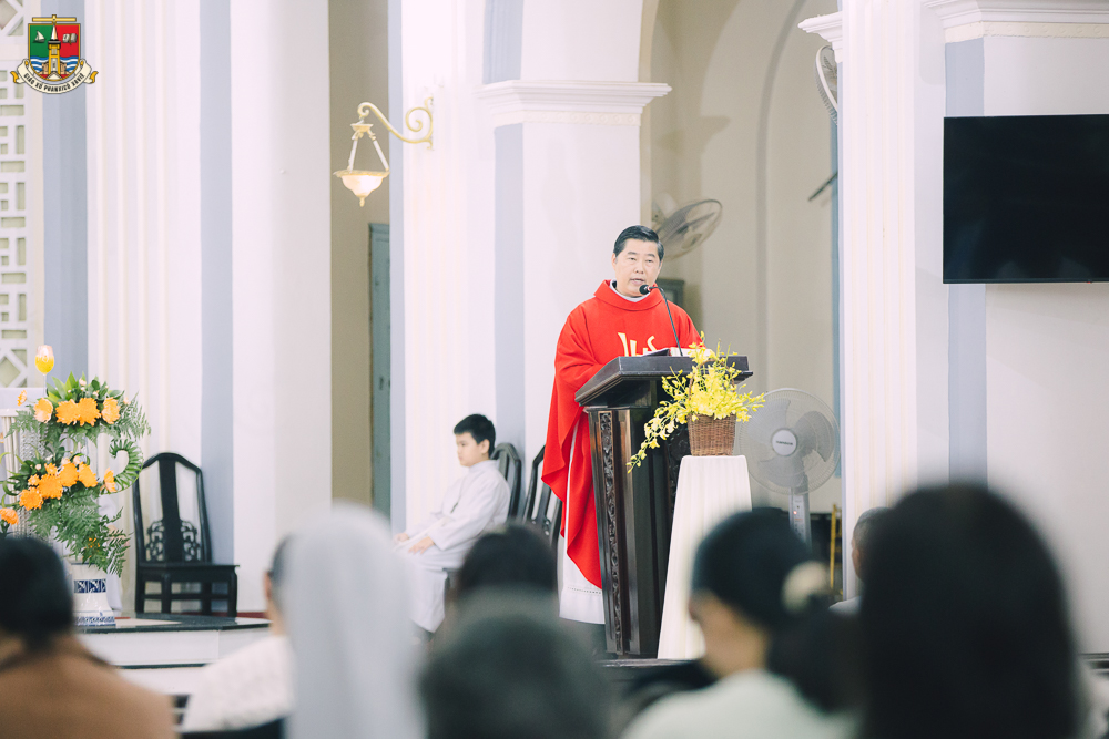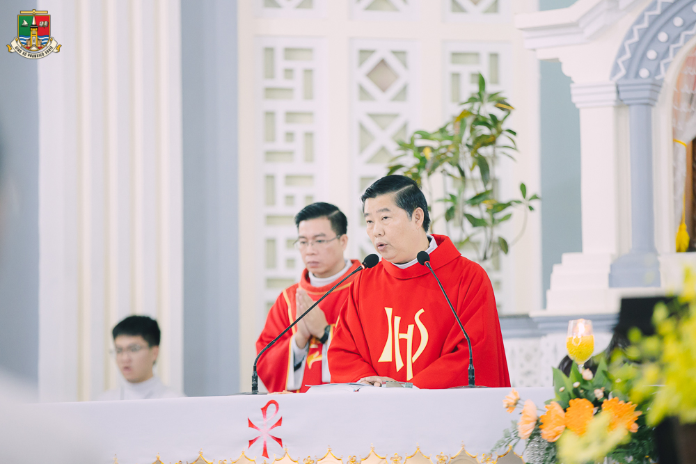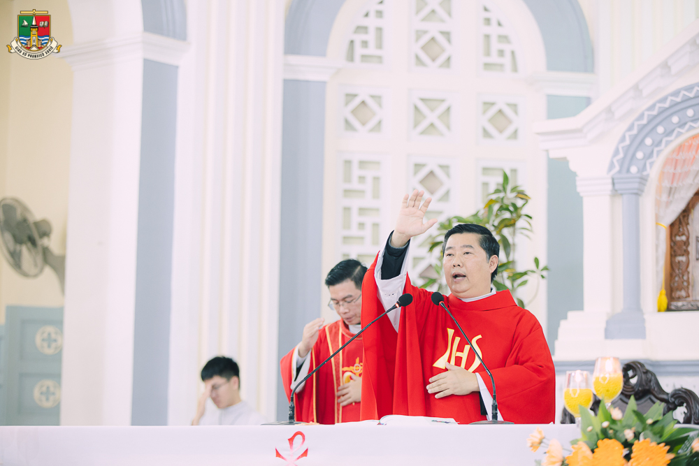 Khởi sự Thánh Lễ, Cha Quản xứ Phêrô chủ tế nói lên ý nghĩa của ngày lễ Các Thánh Tử Đạo Việt Nam, là những người đã chịu chết cho Đức tin, nhưng trước đó các ngài đã dám sống hết mình với niềm tin ấy trong mỗi ngày sống. Đối với HĐMV Giáo xứ, Cha Quản xứ nhấn mạnh quý chức cũng đã can đảm đáp lại lời mời gọi để dấn thân cho “ơn gọi phục vụ” Giáo xứ, gạt bỏ đi những lợi ích cá nhân để hy sinh cho lợi ích cộng đoàn. Đồng thời, Cha Quản xứ còn mời gọi quý chức nói riêng và cộng đoàn Giáo xứ nói chung noi gương Các Thánh Tử đạo Việt Nam để thổi bùng ngọn lửa nhiệt thành, biết chọn Chúa trong từng quyết định, từng lời nói và việc làm.