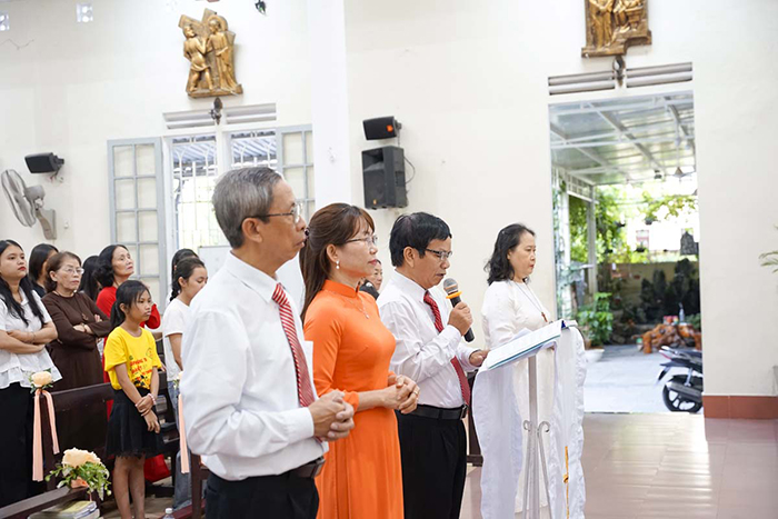 Trong phần Lời nguyện tín hữu, vị đại diện Hội đồng Giáo xứ đã nguyện xin thêm lời cầu nguyện đặc biệt cho Cha Quản xứ, được Thiên Chúa sẽ trả công bội hậu và tiếp tục ban muôn phúc lành trên Cha trong sứ vụ mới.