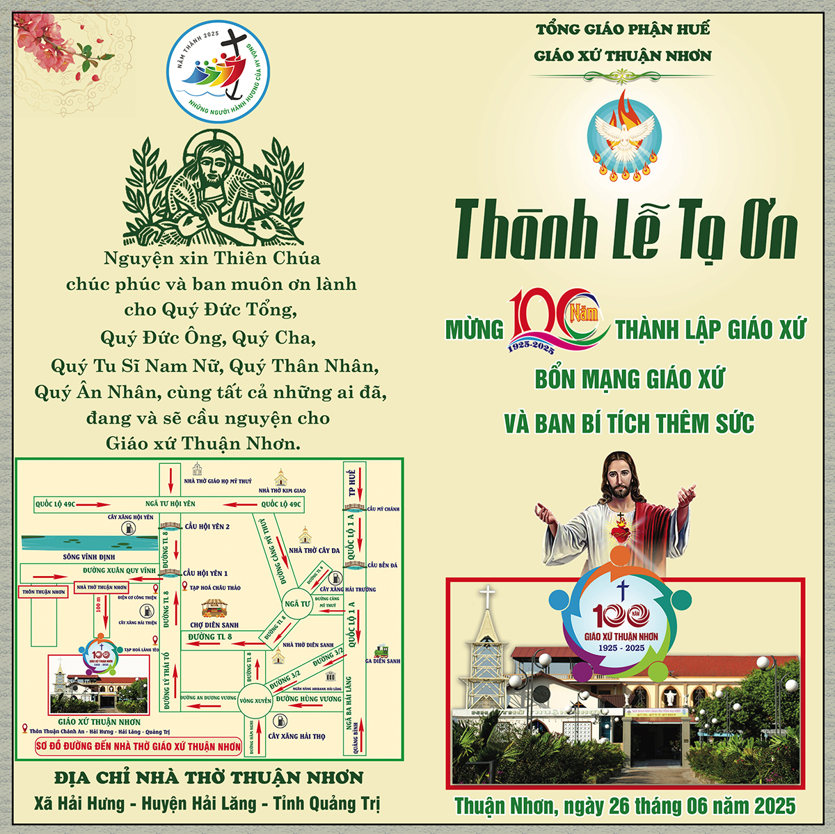 Thiệp báo: Thánh lễ Tạ ơn Kỷ niệm 100 năm thành lập và mừng Bổn mạng Giáo xứ Thuận Nhơn