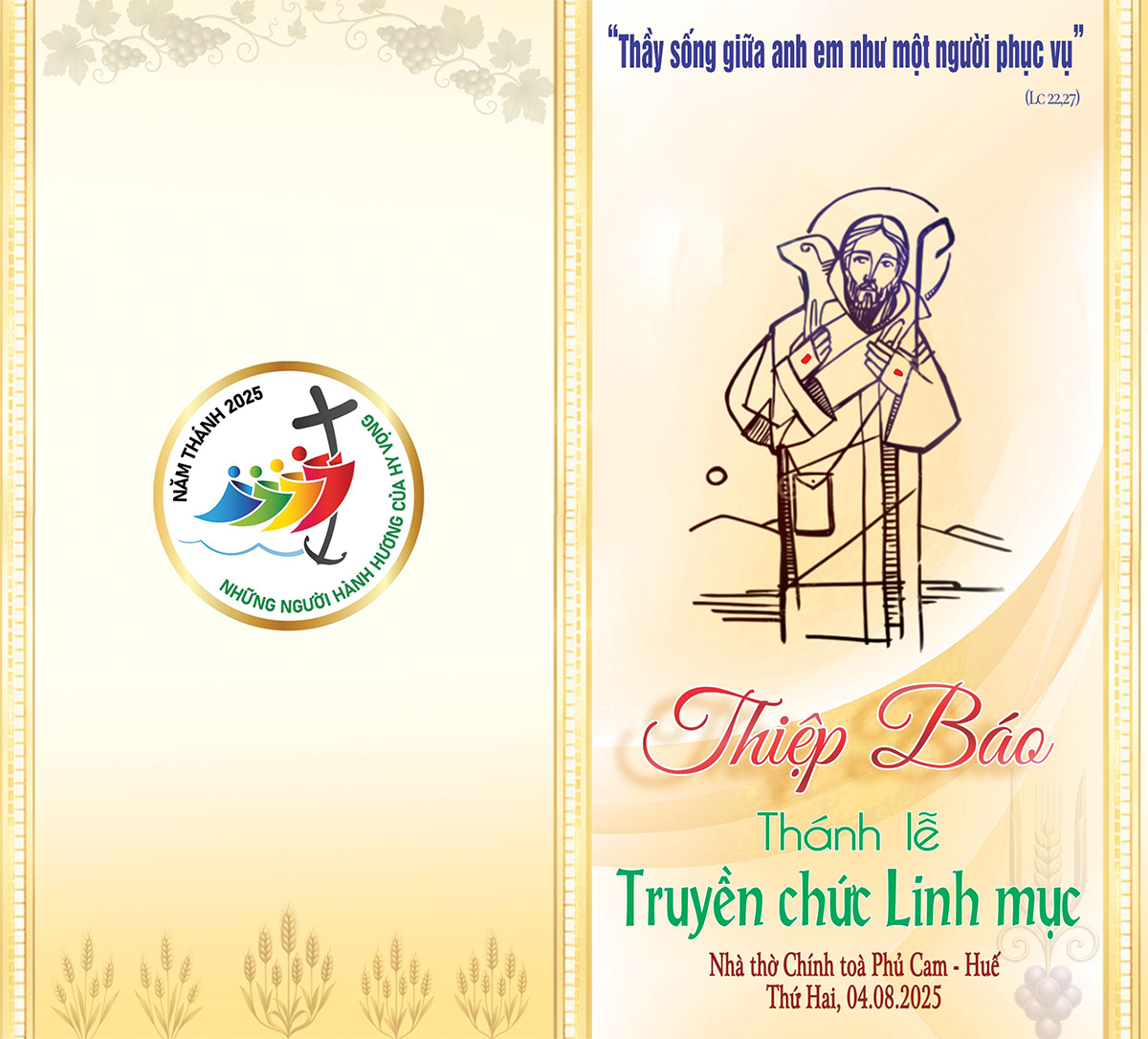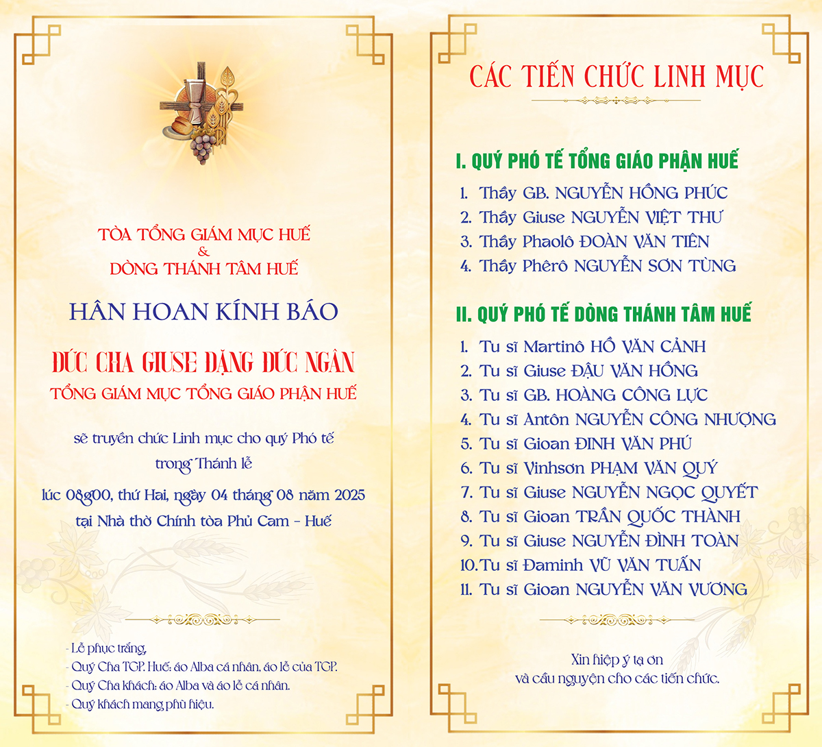 Thiệp báo: Thánh lễ Truyền chức Linh mục Tổng Giáo phận Huế năm 2025