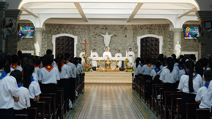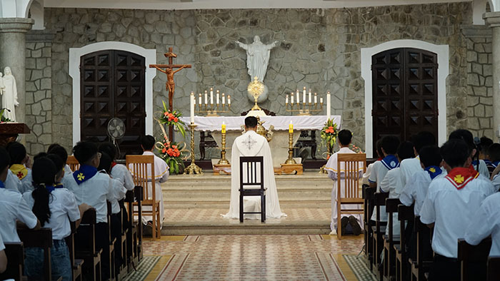 Cao điểm của ngày họp mặt chính là Thánh lễ trọng thể kính Mình Máu Thánh Chúa Kitô – Bổn mạng Phong trào TNTT được Cha Giuse Phan Văn Quyền – Tuyên úy Liên đoàn chủ tế. Đồng tế với ngài trong Thánh lễ này còn có Cha Placido Phan Huy Hiếu – Quản xứ Thiên An, Cha Gioakim Trần Đình Tạo cùng quý Cha Tuyên úy các Xứ đoàn.