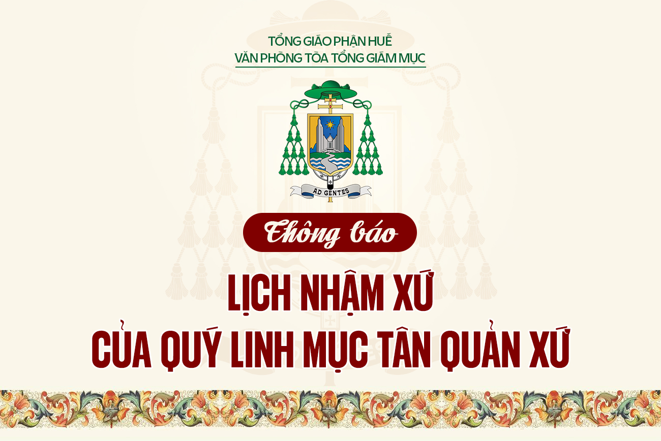 Tòa Tổng Giám mục Huế trân trọng thông báo Lịch nhậm xứ của quý Cha Tân Quản xứ vừa được bổ nhiệm và thuyên chuyển.