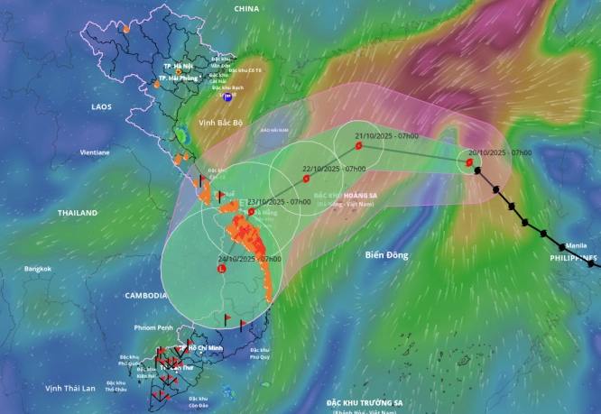 Trung tâm Dự báo Khí tượng Thủy văn quốc gia cho biết lúc 7h ngày 20/10, tâm bão cách đặc khu Hoàng Sa khoảng 490 km về phía đông đông bắc, sức gió mạnh nhất 88 km/h, cấp 9, giật cấp 11, di chuyển hướng tây bắc với tốc độ 25 km/h.