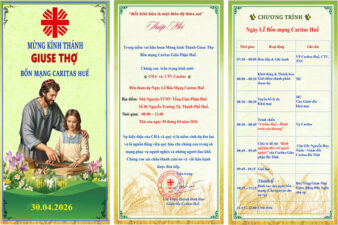 Ngày Lễ Bổn Mạng Caritas Huế sẽ được bắt đầu vào lúc 07g30 đến 12g00 ngày 30.04.2026 tại Trung Tâm Mục Vụ TGP Huế.