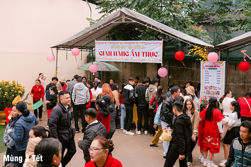 Khi đến với Nhà thờ Đốc Sơ, mọi người đã cảm nhận được hương vị Tết rộn ràng nhờ những tiểu cảnh, hoa tươi đầy màu sắc, câu đối, sân khấu, chợ quê,… Năm nay không gian có đôi phần hạn chế vì công trình xây dựng ngôi thánh đường còn đang còn ngổn ngang, nhưng cùng cố gắng hết sức để việc tổ chức được diễn ra tốt đẹp.