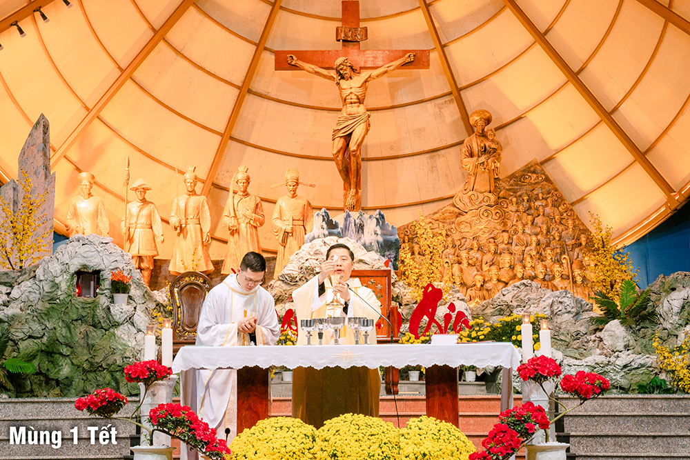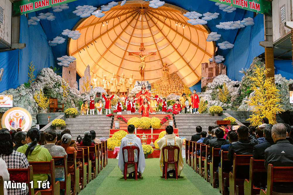 Tối 30 Tết (09.02.2024), mọi người cùng hiệp dâng Thánh Lễ Tạ Ơn cuối năm lúc 19g00 và chào đón khoảnh khắc giao thừa trong tiếng chuông ngân và vô cùng linh thiêng tại ngôi nhà thờ tạm đơn sơ…
