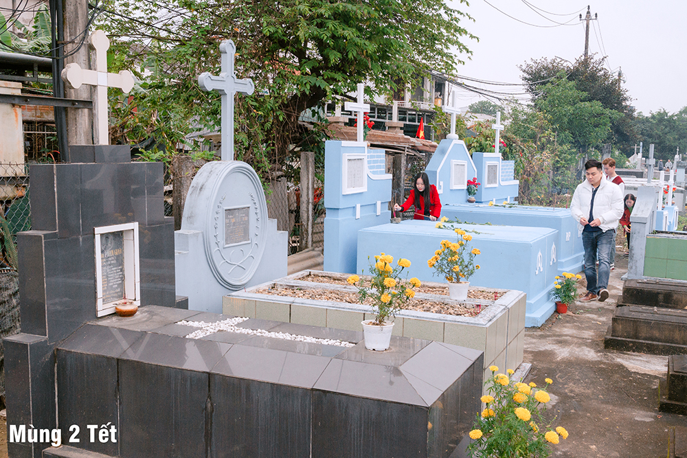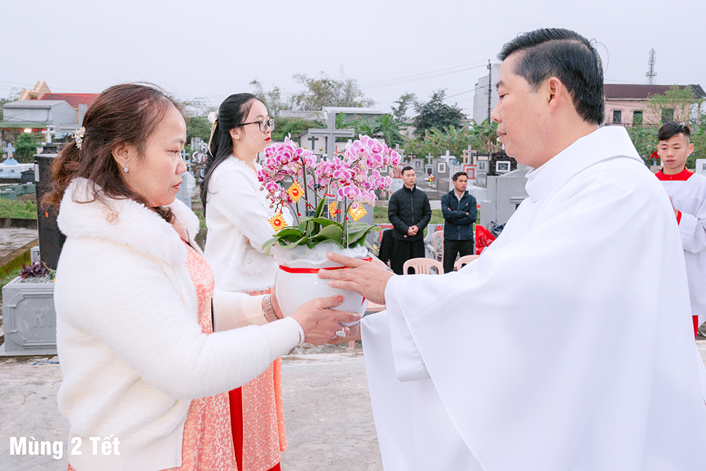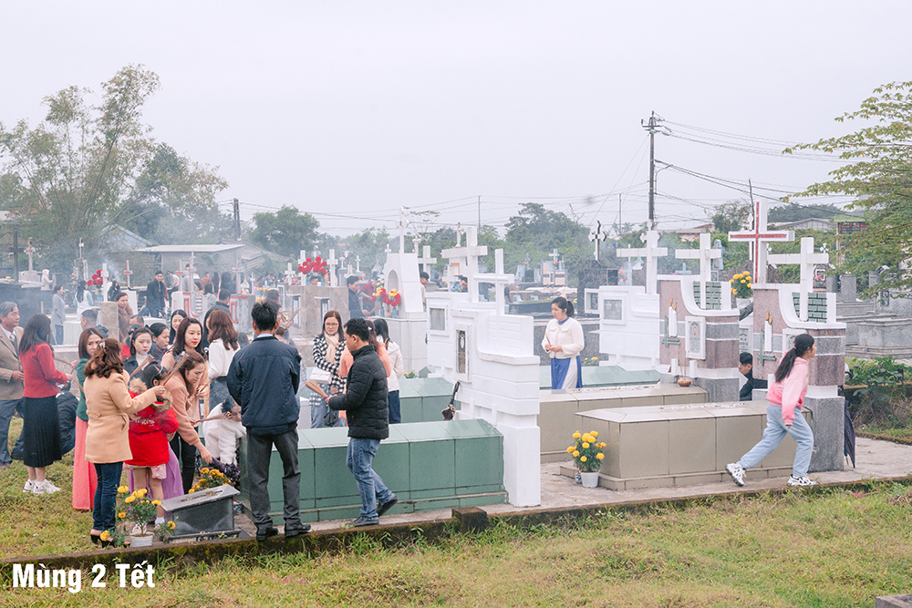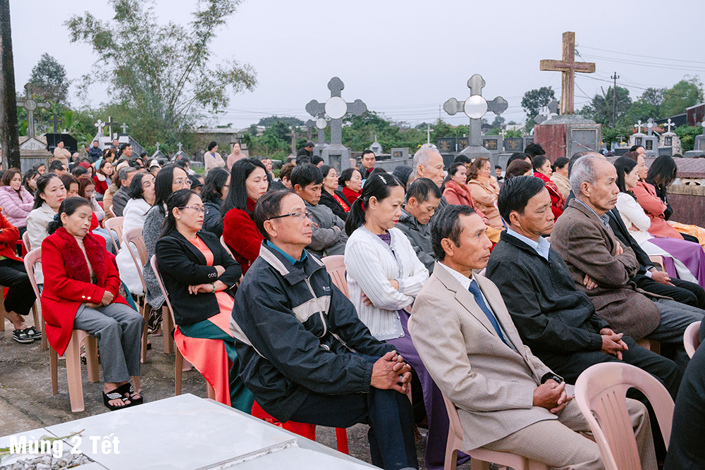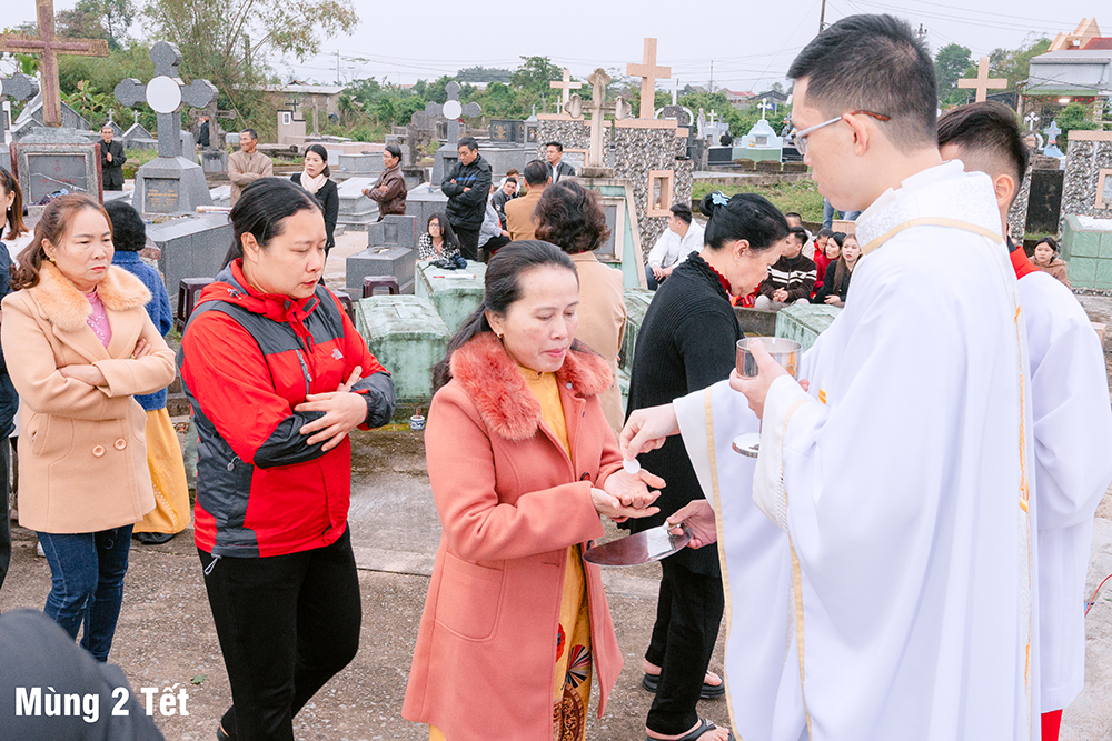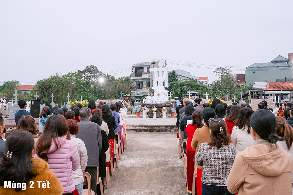 Ngày Mùng Hai Tết, Thánh lễ Kính nhớ Tổ tiên Ông bà được cử hành tại Đất thánh của Giáo xứ. Sau Thánh lễ, mỗi người thành kính dâng nén hương nơi phần mộ của những người thân yêu trong gia đình, dòng tộc, các bậc tiền nhân của Giáo xứ đã được Chúa thương gọi về.