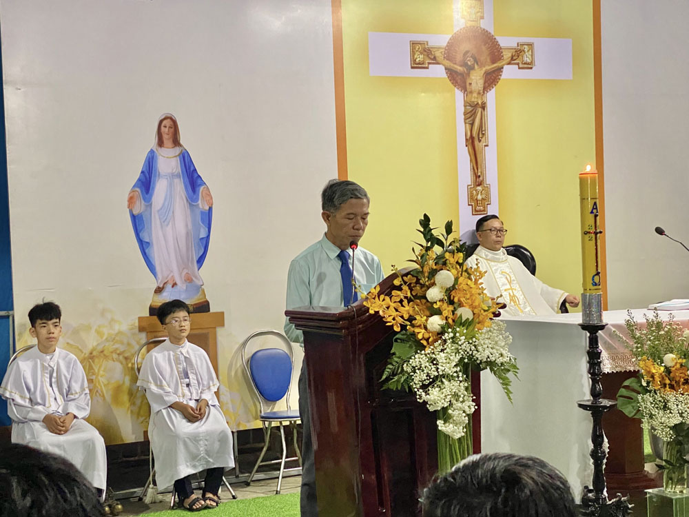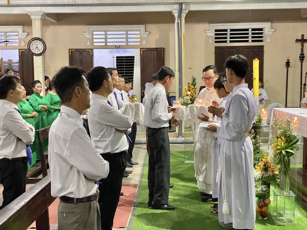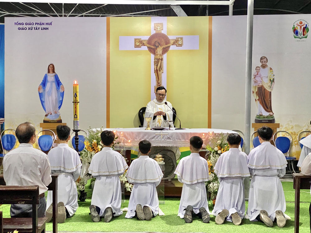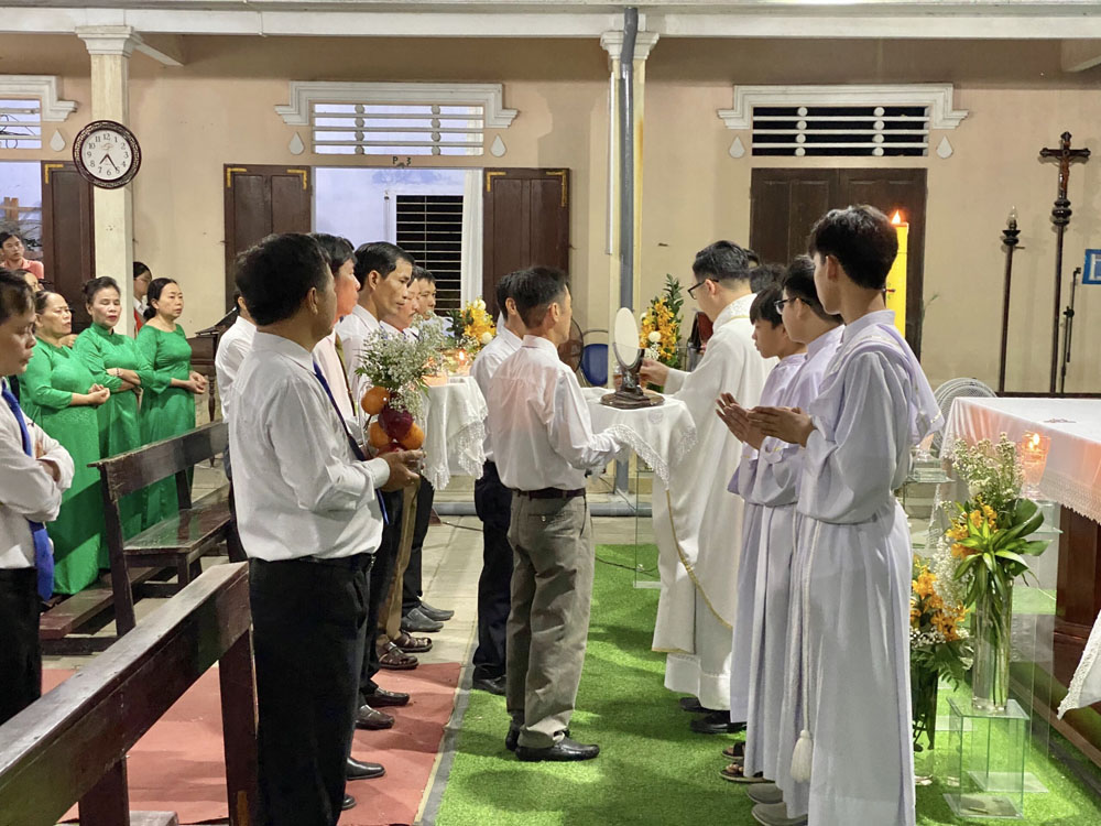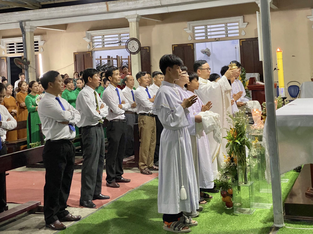 Cao điểm là Thánh lễ do Cha Quản xứ Giuse chủ tế. Kết hiệp đồng thời trong niềm vui với tâm tình tạ ơn và tôn kính Đức Maria Trinh Nữ Vương và Thánh Giuse Thợ. Hôm nay cũng là ngày Lễ Bổn mạng Gia trưởng của Giáo xứ, ngày tôn vinh giá trị của lao động trong cuộc sống hằng ngày. Đoàn rước và phụng vụ được chuẩn bị cách trang nghiêm với Thánh lễ được cử hành cách sốt sắng.