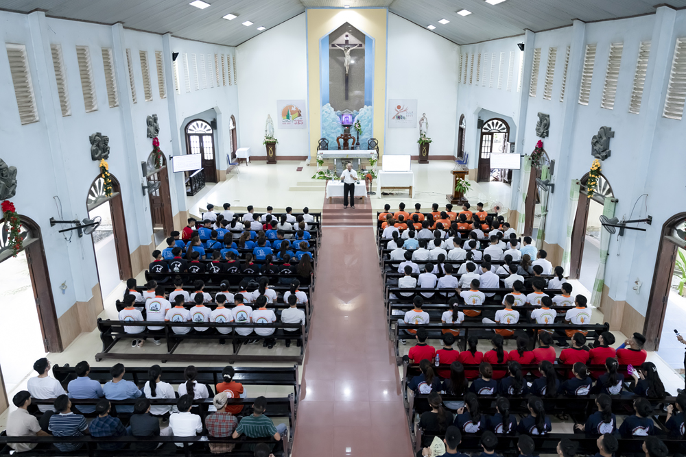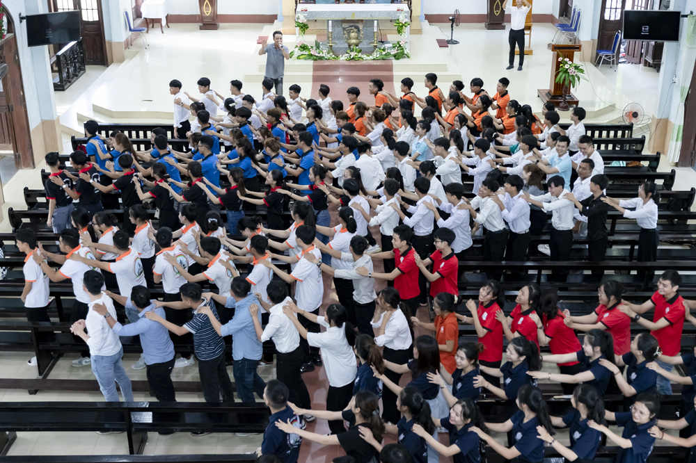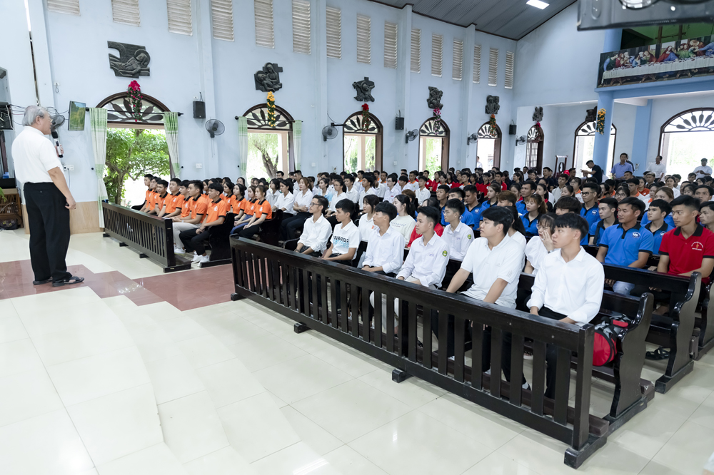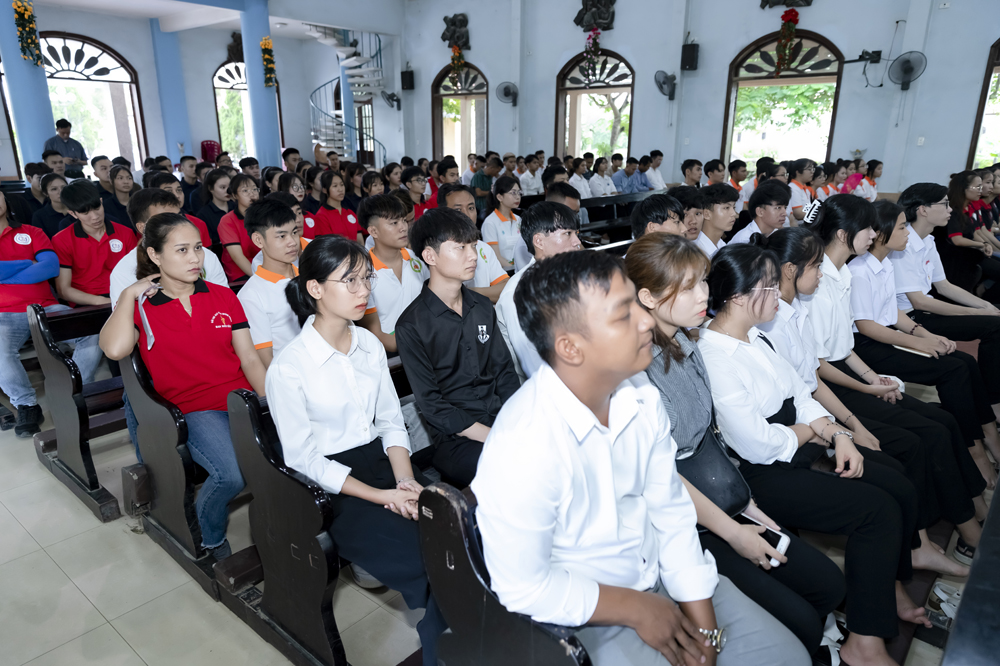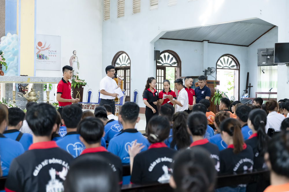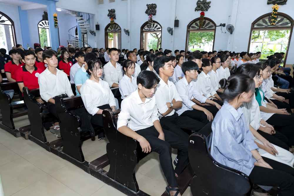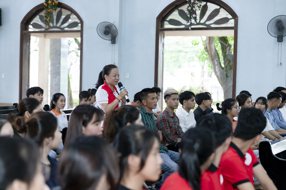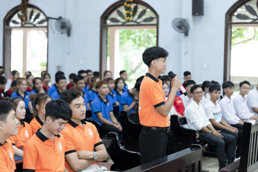 Xen lẫn những chia sẻ của Cha Đaminh là những câu hỏi được đặt ra dành cho các bạn trẻ trao đổi, trình bày ý kiến của mình.