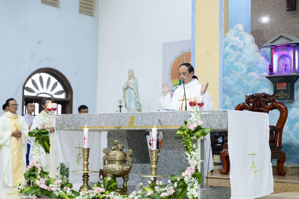 Cao điểm của buổi gặp mặt hôm nay đó là Thánh lễ Bổn mạng do Cha Hạt trưởng Chủ tế, cùng đồng tế có quý Cha trong Hạt.