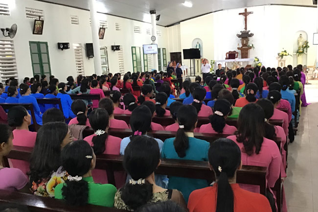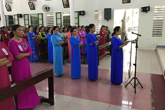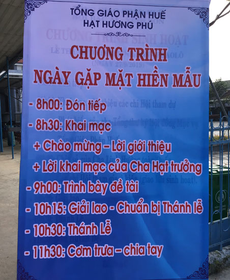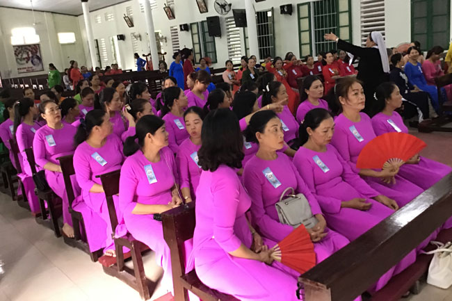 Lúc 08g00 sáng ngày 29.9.2019, tại Nhà thờ Giáo xứ Phù Lương, một bầu khí rộn ràng, vui vẻ của sự tiếp đón, chào hỏi nhau trong tiếng cười nói và sắc màu rực rỡ của những tà áo dài mà các hiền mẫu hạt Hương Phú đang tề tựu họp mặt thật sinh động.