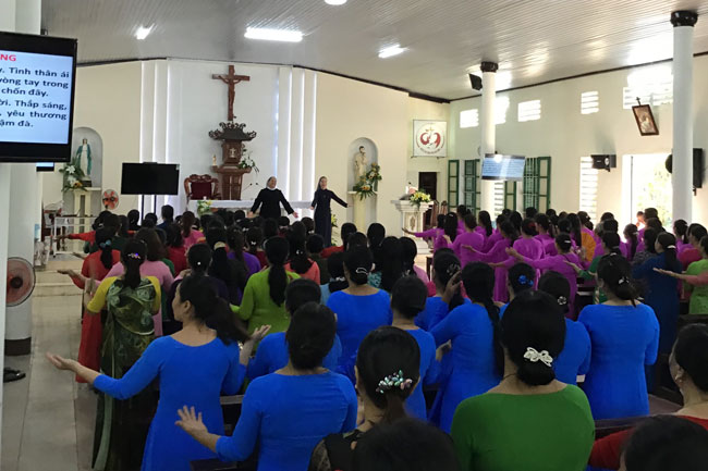 Từ 09g00 – 10g15, Nữ tu Anna Nguyễn Thị Hiền và Nữ tu Maria Nguyễn Thị Hằng thuộc Dòng Con Đức Mẹ Vô Nhiễm Huế đã trình bày đề tài: “Mầu nhiệm sự sống”. Trước khi đi vào đề tài, các Nữ tu đã hỏi về những băn khăn lo lắng về lĩnh vực sức khỏe mà các hiền mẫu đang gặp phải hiện nay.