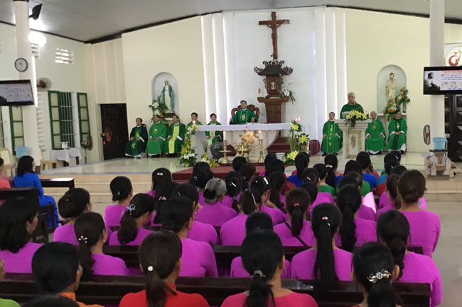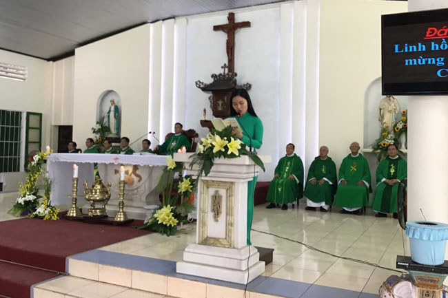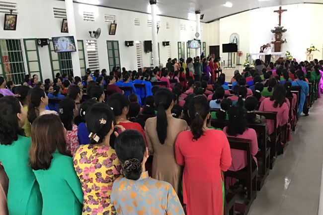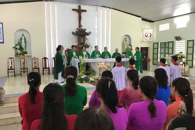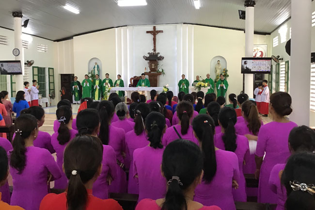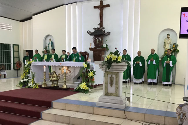 Đúng 10g30, các hiền mẫu sốt sắng tham dự Thánh lễ đồng tế do Cha Hạt trưởng Phanxicô Xaviê Nguyễn Văn Thương chủ tế, cùng đồng tế còn có quý Cha trong Hạt.