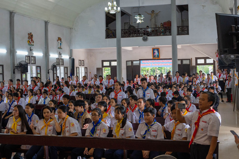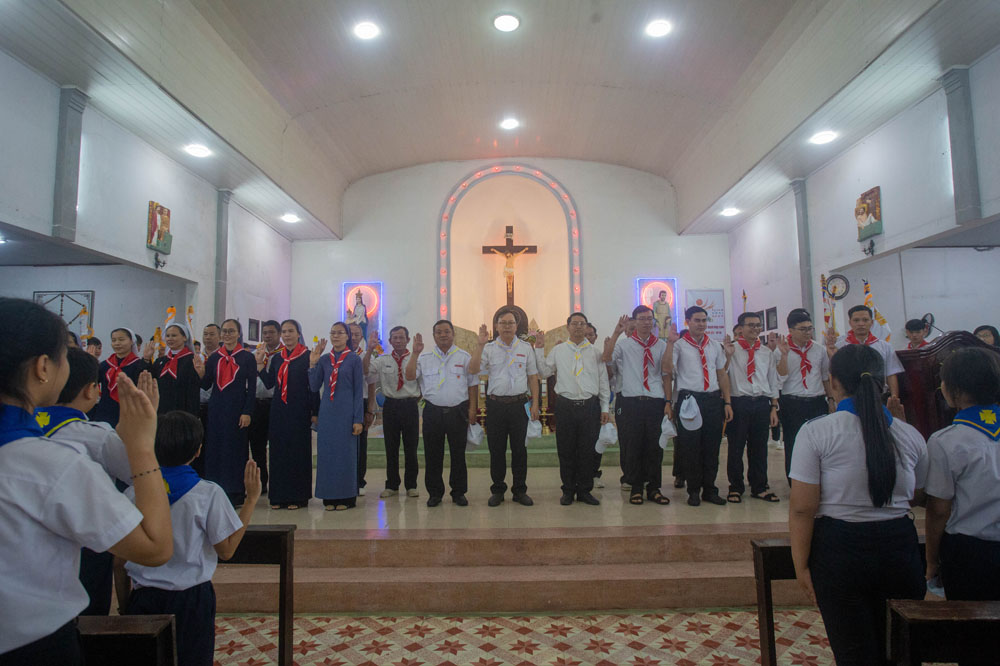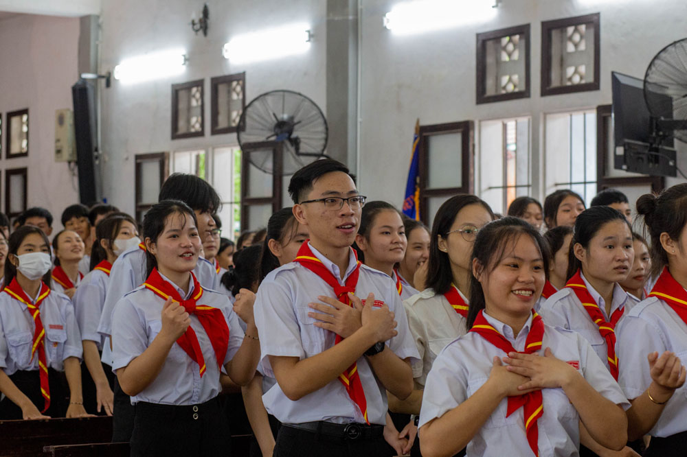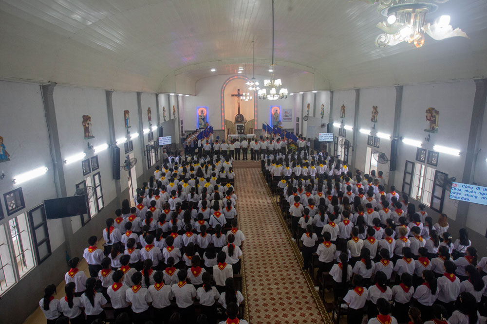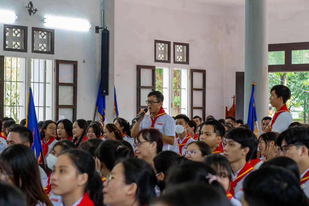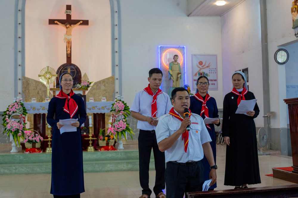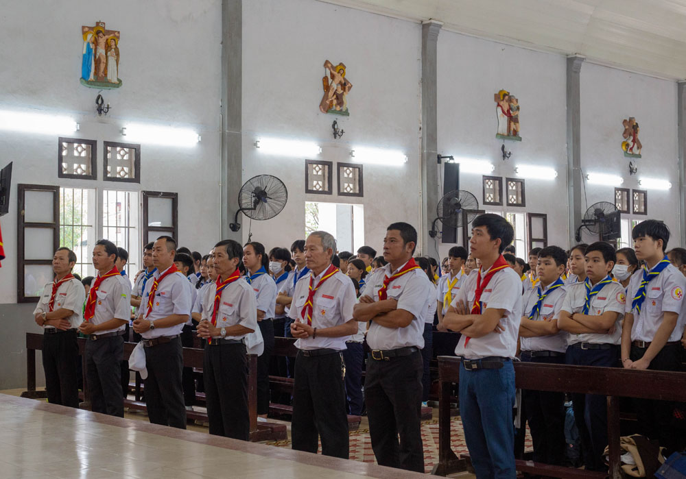 Chương trình khai mạc có sự hiện diện của Cha Giuse Phan Văn Quyền – Tuyên úy Hiệp đoàn thành phố, Cha Mathêu Trần Nguyên – Tuyên úy Hiệp đoàn Quảng Trị, quý Cha Tuyên úy các xứ đoàn, quý Chị và quý Thầy Trợ úy, cùng 640 tham dự viên đến từ 36 xứ đoàn.