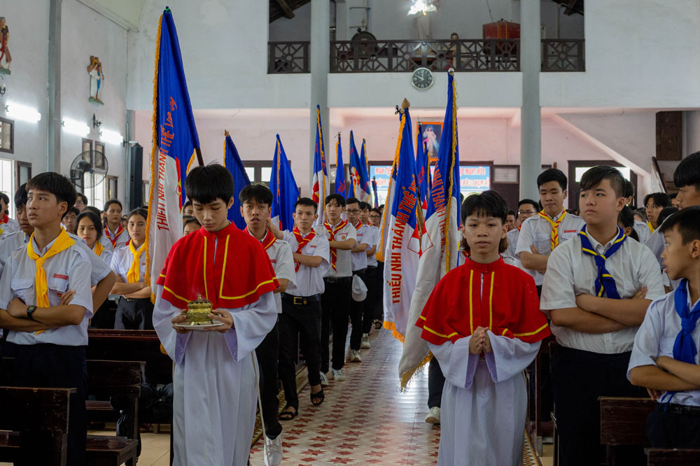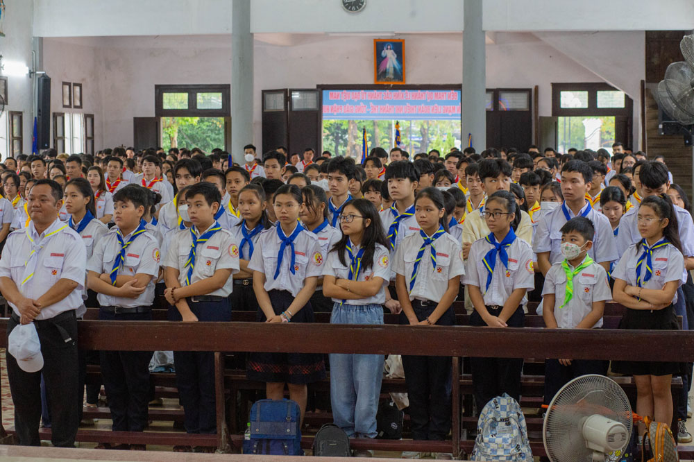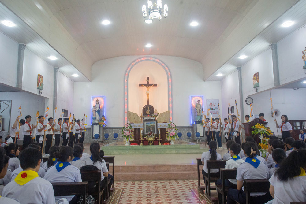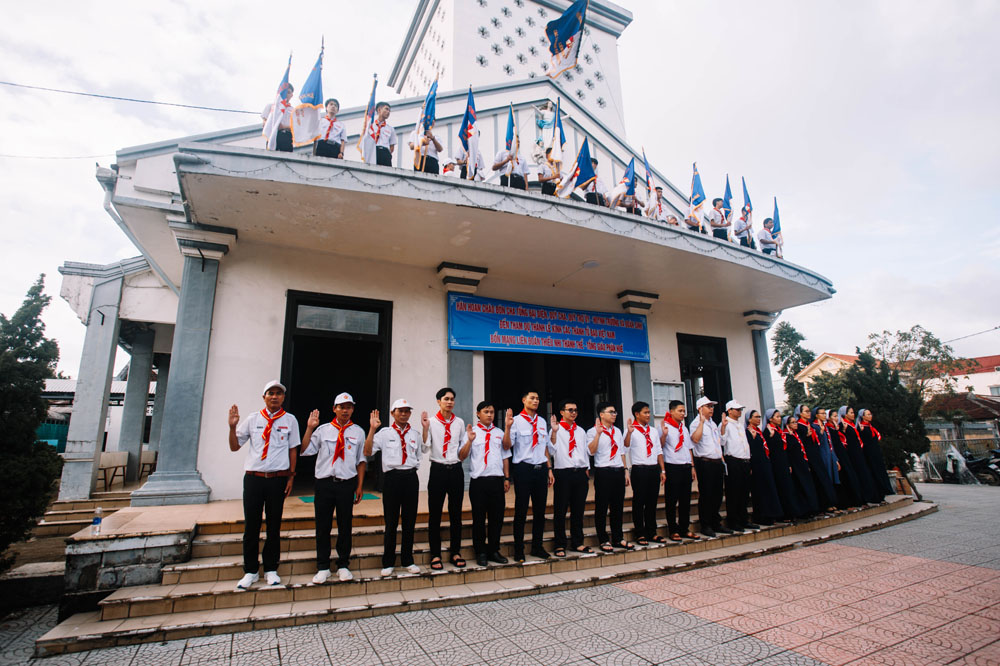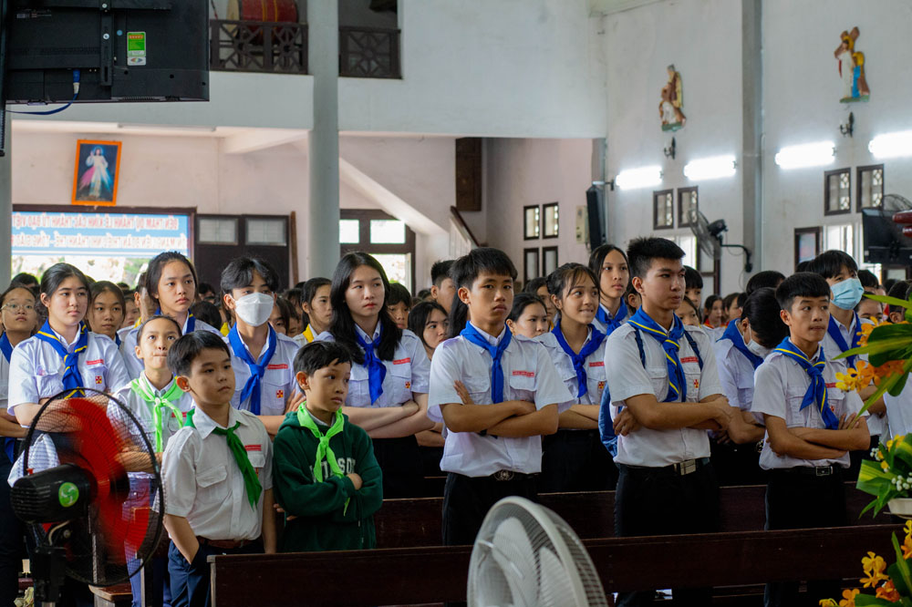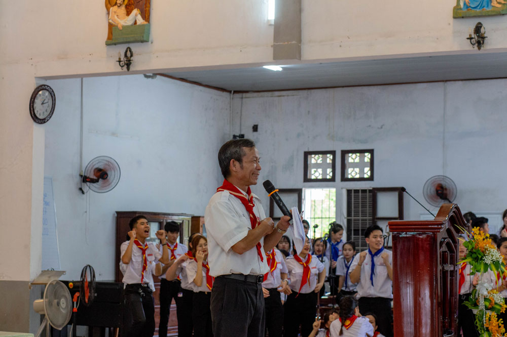 Chương trình khai mạc có sự hiện diện của Cha Giuse Phan Văn Quyền – Tuyên úy Hiệp đoàn thành phố, Cha Mathêu Trần Nguyên – Tuyên úy Hiệp đoàn Quảng Trị, quý Cha Tuyên úy các xứ đoàn, quý Chị và quý Thầy Trợ úy, cùng 640 tham dự viên đến từ 36 xứ đoàn.