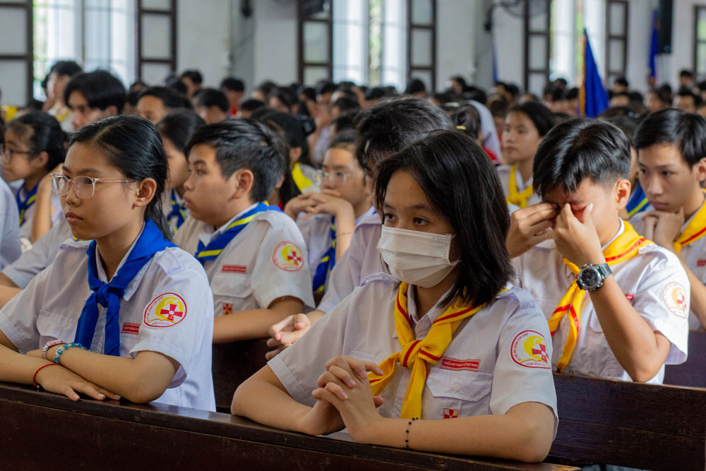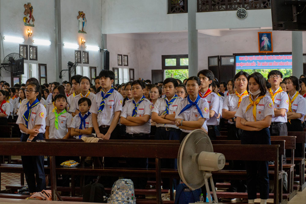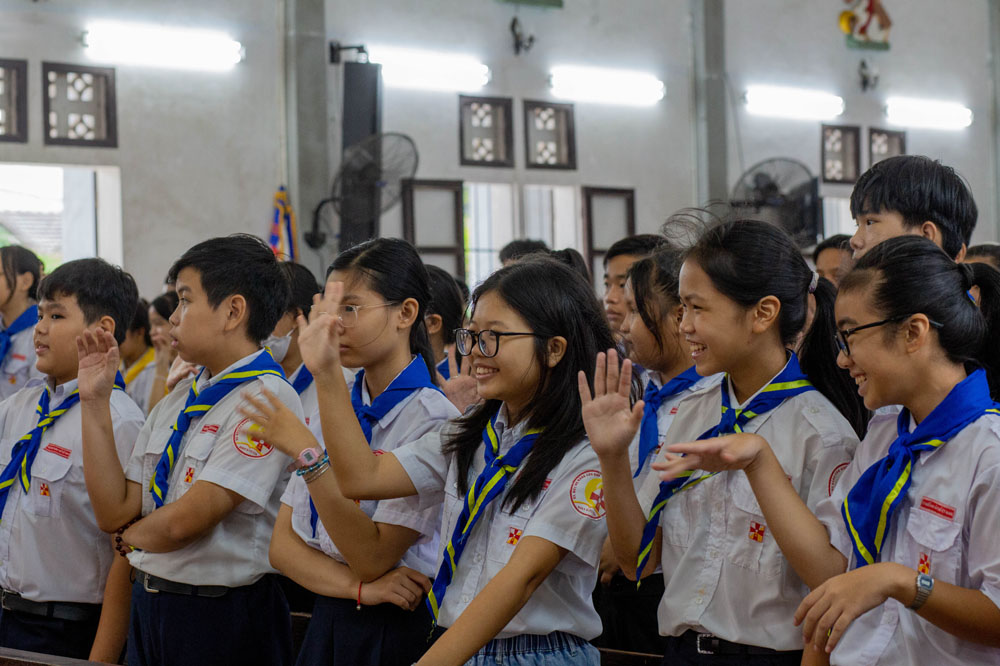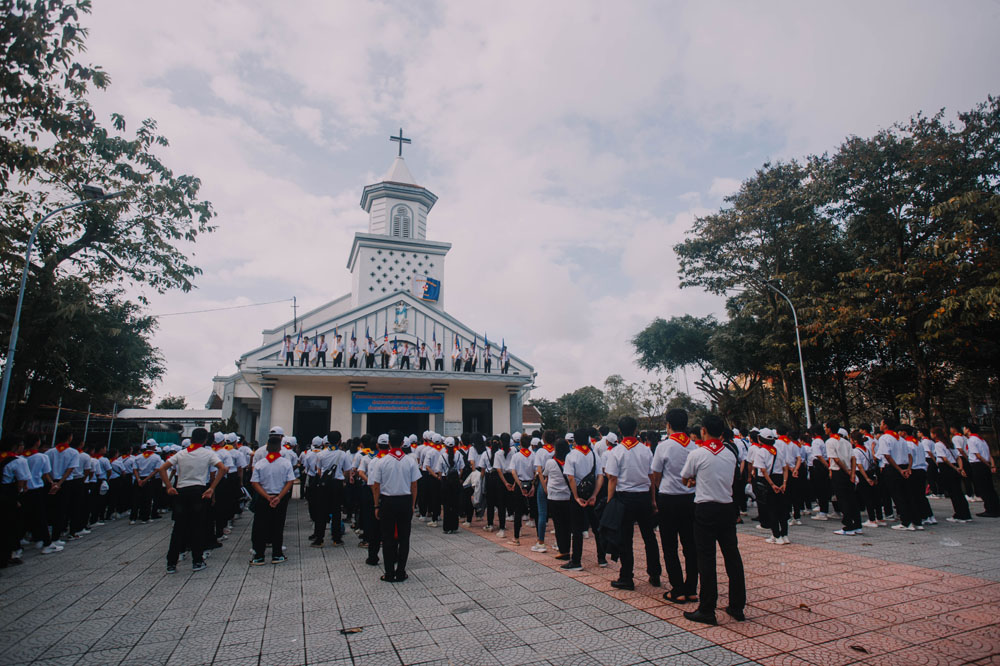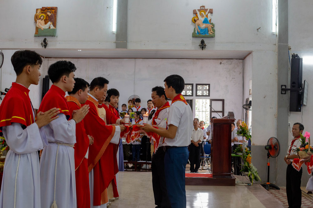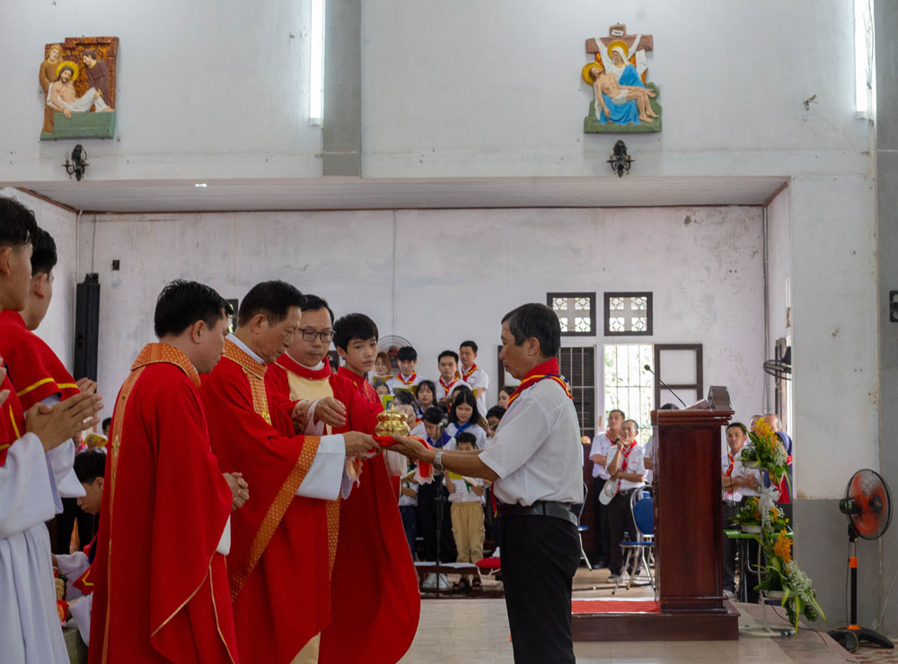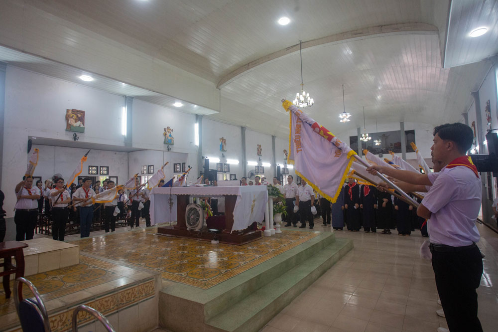 Chương trình khai mạc có sự hiện diện của Cha Giuse Phan Văn Quyền – Tuyên úy Hiệp đoàn thành phố, Cha Mathêu Trần Nguyên – Tuyên úy Hiệp đoàn Quảng Trị, quý Cha Tuyên úy các xứ đoàn, quý Chị và quý Thầy Trợ úy, cùng 640 tham dự viên đến từ 36 xứ đoàn.