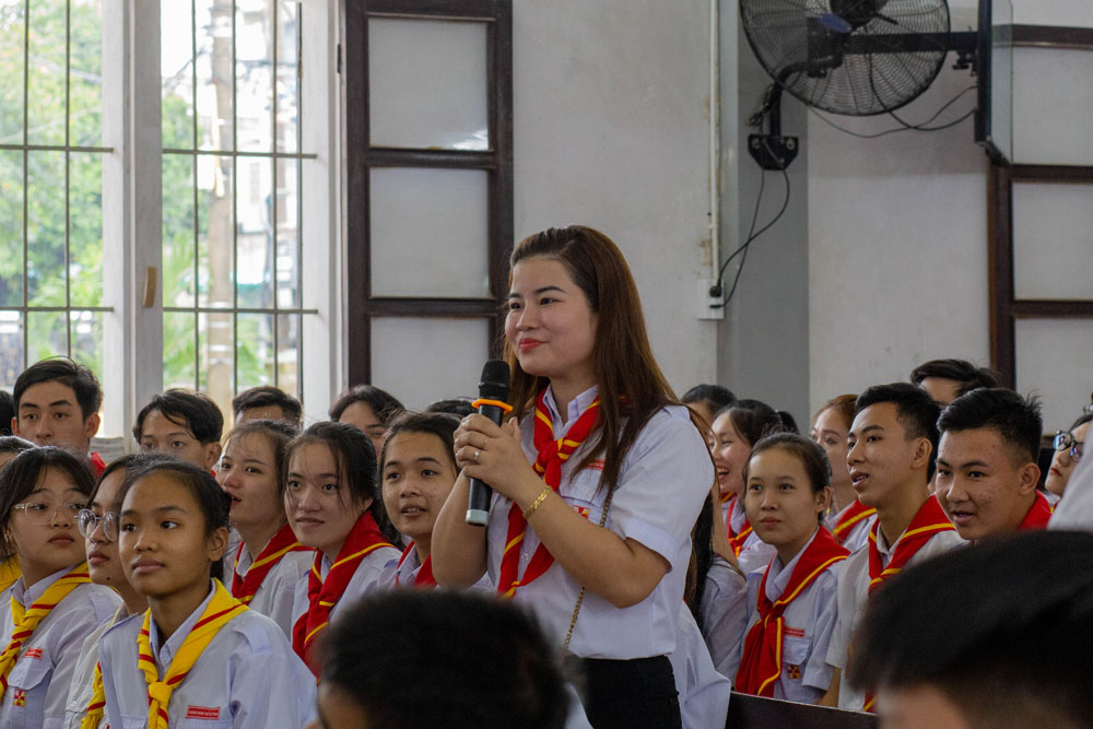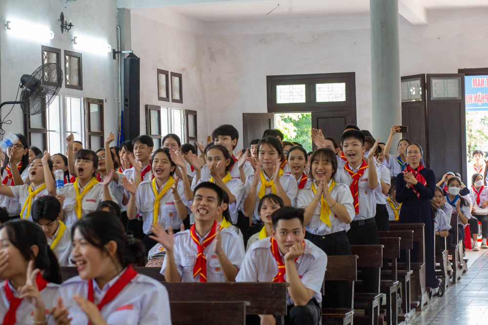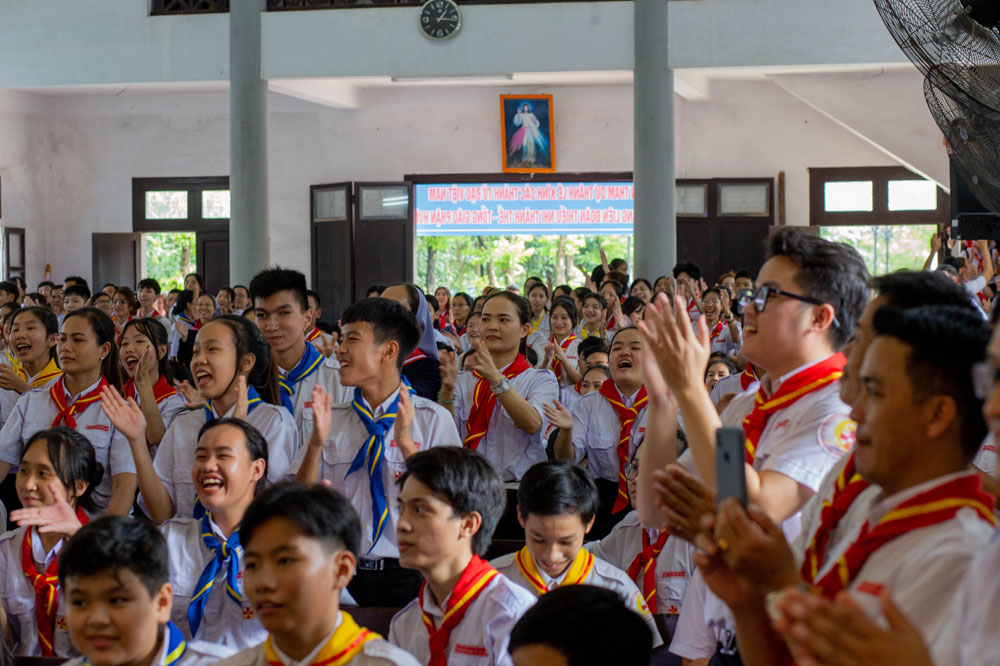 Sau phần khai mạc, các tham dự viên hân hoan đón chào Cha Đaminh Phan Hưng – Tổng Thư ký Hội Đồng Mục Vụ TGP Huế đến chia sẻ đề tài: “Người Huynh trưởng và Đoàn sinh sống đời Hiệp Hành”.