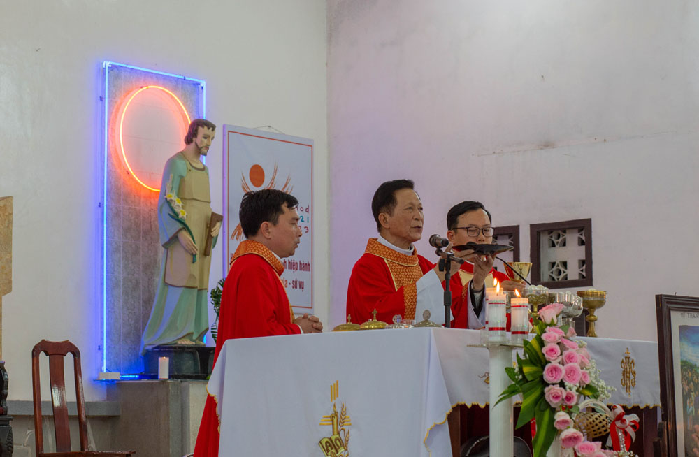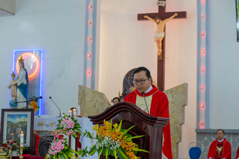 Trong phần chia sẻ Lời Chúa, Cha Giuse Phan Văn Quyền đã làm nổi bật hình ảnh Các Thánh Tử Đạo đã biết đặt “ngôi sao hi vọng” nơi Đức Kitô, các huynh trưởng được mời gọi như các Thánh ngày xưa cũng đặt ngôi sao hi vọng vào Chúa Giêsu để có được: sự chắc chắn, an tâm, và không thất vọng. Các Thánh Tử Đạo là nguồn năng lực mới giúp mỗi người giữ vững đức tin mỗi ngày. Thời đại hôm nay mặc dù không còn bắt đạo, nhưng chính các huynh trưởng phải sống tử đạo mỗi ngày: tử đạo cho những tham lam bất chính, những thói hư tật xấu, tử đạo những tinh thần lười biếng không dấn thân phục vụ. Lời Chúa mời gọi: “Ai muốn theo tôi, hãy từ bỏ chính mình, vác thập giá mỗi ngày mà theo”. Xin cho mỗi huynh trưởng biết đặt ngôi sao hy vọng đời mình vào Thầy Giêsu.