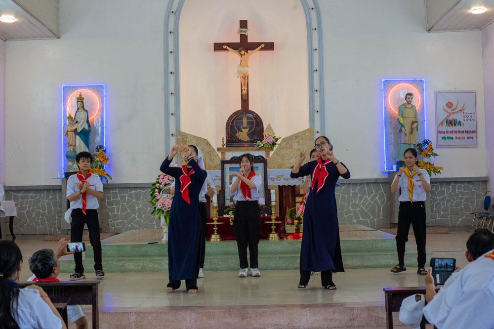Sáng Chúa Nhật 13/11/2022, tại Giáo xứ Tây Linh, lễ kính Các Thánh Tử Đạo Việt Nam, là bổn mạng Liên Đoàn Thiếu Nhi Thánh Thể TGP Huế, đã quy tụ hơn 640 tham dự viên là các Trợ Úy, Huynh Trưởng và Đoàn Sinh đến từ Hạt Quảng Trị, Hạt Thành Phố, Hạt Hương Quảng Phong, Hạt Hương Phú, Hạt Hải Vân 1 và Hải Vân 2 để mừng bổn mạng và sinh hoạt với chủ đề: “Người huynh trưởng và đoàn sinh sống đời hiệp hành”.