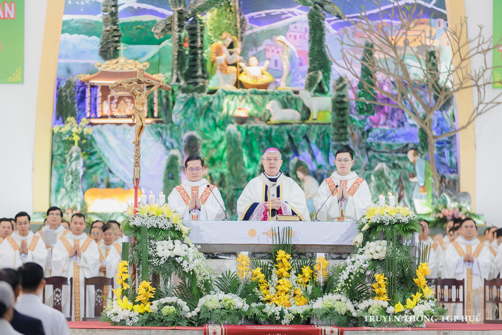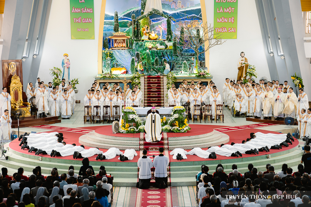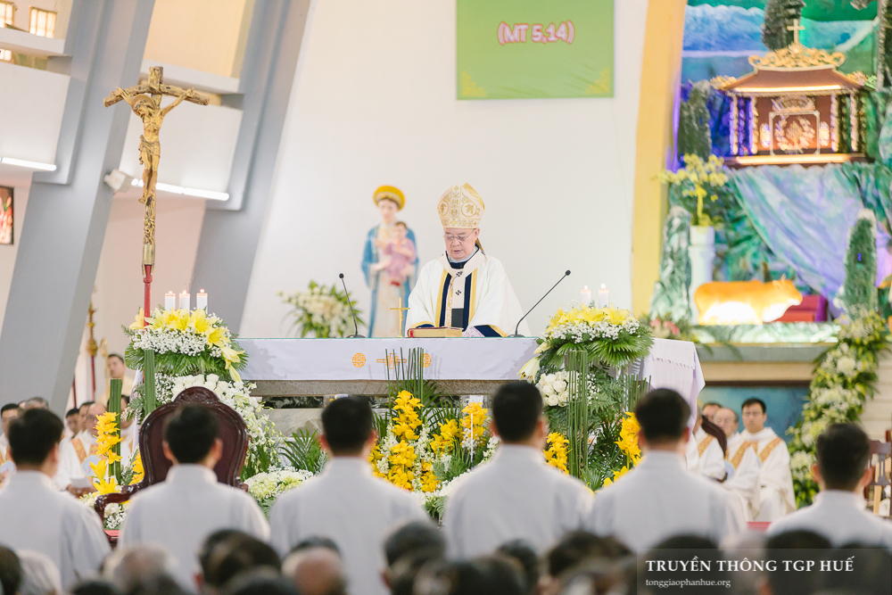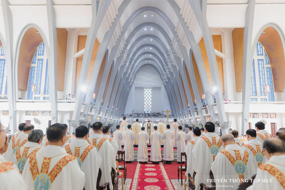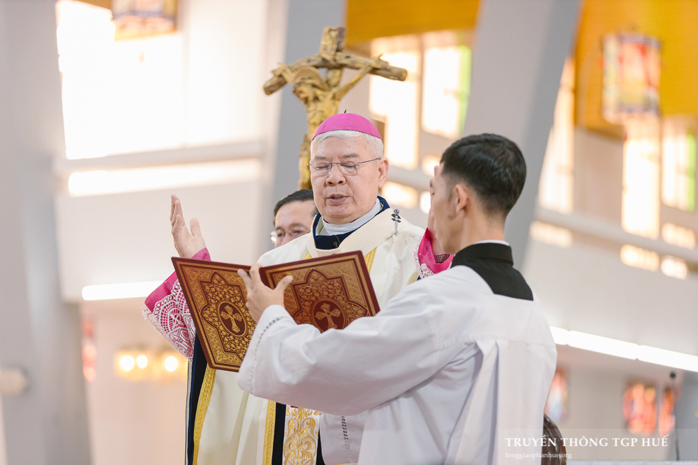 Thánh lễ được cử hành lúc 08g30 thứ Năm ngày đầu năm mới 01.01.2026 tại Nhà thờ Chính toà Phủ Cam. Với Thánh lễ này, Đức TGM Giuse đặt tay truyền chức Phó tế cho 10 Đại Chủng sinh TGP và 11 Tu sĩ Dòng Thánh Tâm Huế. Cùng đồng tế có Đức Cha Phanxicô Xaviê Lê Văn Hồng – Nguyên TGM TGP Huế, Cha Barnaba Trần Đình Phục – Tổng Đại diện, Cha Đaminh Phan Hưng – Đại diện Giám mục, quý Đức Ông, Cha Phêrô Nguyễn Thái Công – Bề trên Tổng quyền Dòng Thánh Tâm Huế cùng hơn 300 Linh mục và Phó tế trong và ngoài TGP. Hiệp dâng tham dự Thánh lễ có đông đảo quý Đại Chủng sinh, quý Tu sĩ nam nữ và cộng đoàn Dân Chúa đến từ nhiều Giáo phận.