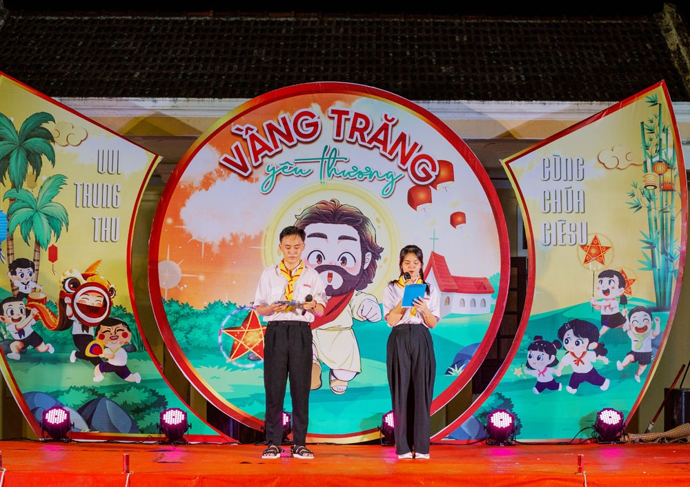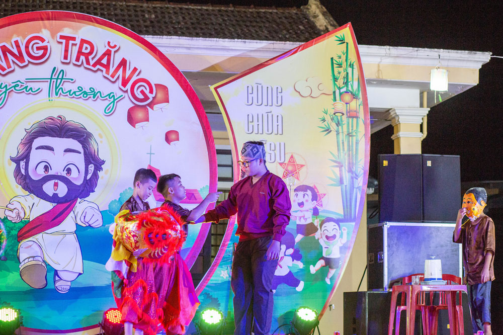 Chương trình vui Tết Trung Thu với chủ đề “Giêsu – Vầng Trăng Yêu Thương” bắt đầu lúc 19g00 với tiết mục khởi động của các em Tông đồ Đội trưởng, tiếp đến là màn múa lân hết sức điệu nghệ của các em Lễ sinh, những tiết mục văn nghệ của các em thiếu nhi trong các lớp Giáo lý.